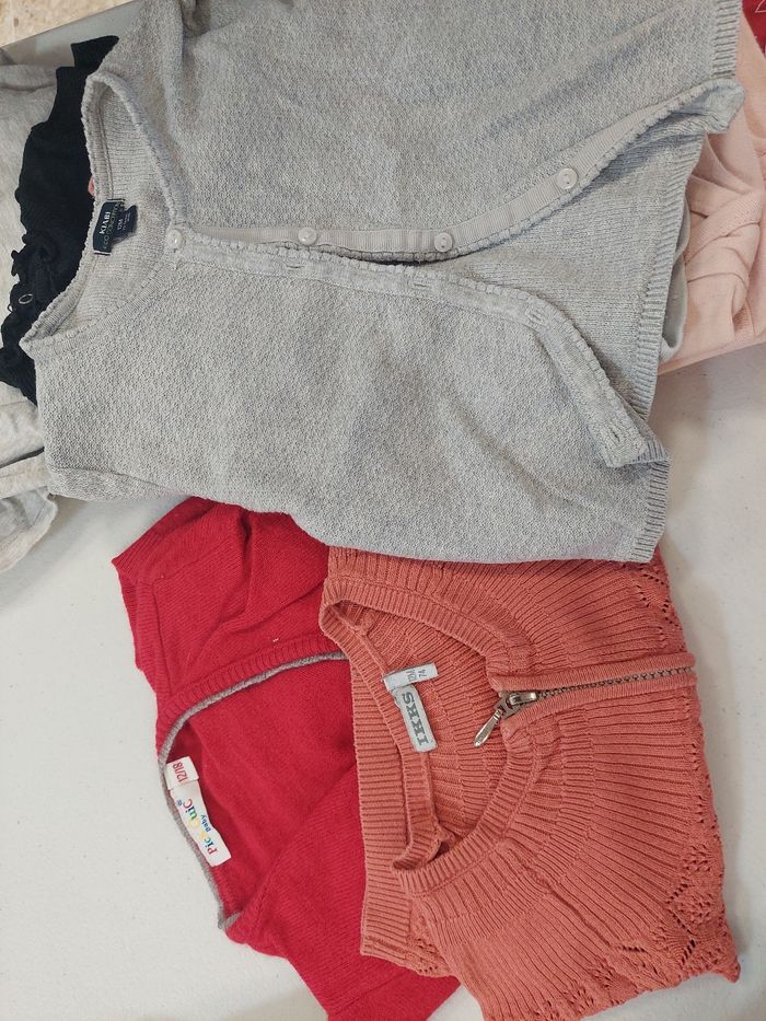 4 gilets 2 veste fourrures 5 leggings 3 tee shirts manche longue 11 bodys manche longue 1 tunique 1 petite chemise Différentes marques - très bon état