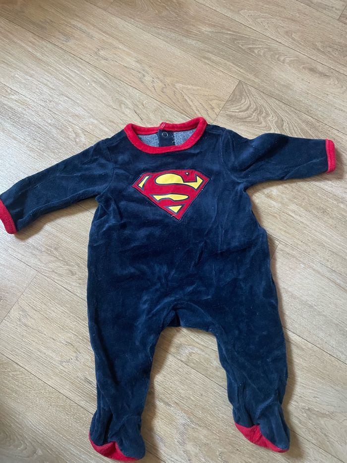 Lot de 5 pyjamas taille 1 mois ( Chaque pyjama à été porté une seule fois sauf le superman qui a été prote deux fois) Et un gilet taille 1 mois jamais porté , neuf Marque tape à l’œil, orchestra Lot à 10€