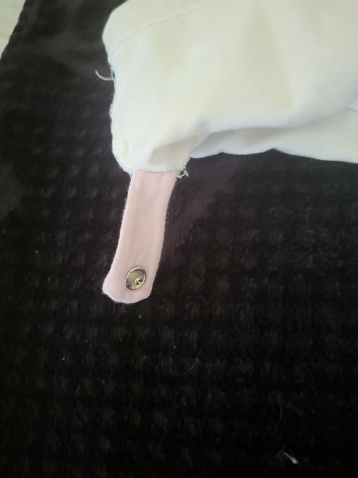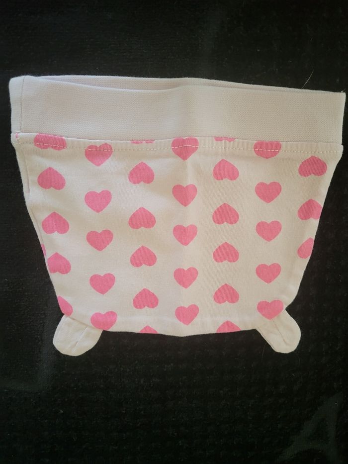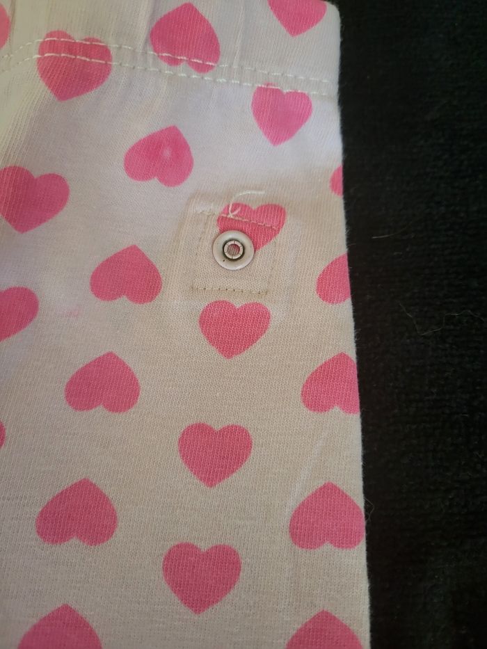 Ensemble haut blanc manche longues rose avec pression pour accroche au leggings et leggings rose coeur rose foncé avec 2 petites pression derrière pour accroché le haut et un bonnet rose coeur rose foncé