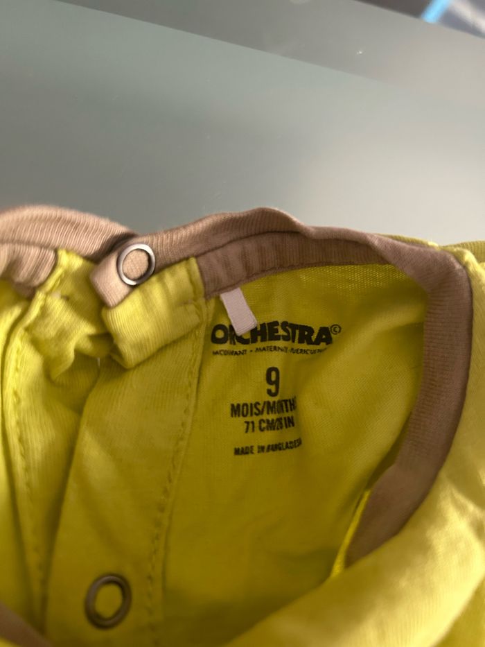 Beaucoup porté mais bon état, marque orchestra. Taille 9 mois