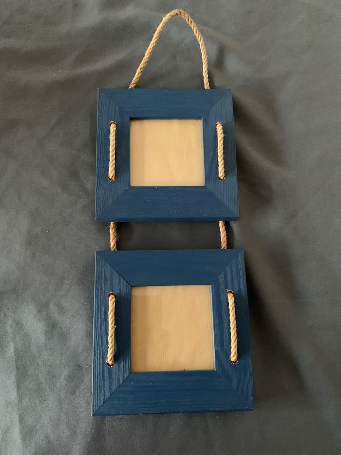 Porte photo double cadre / bois et corde - photo numéro 1
