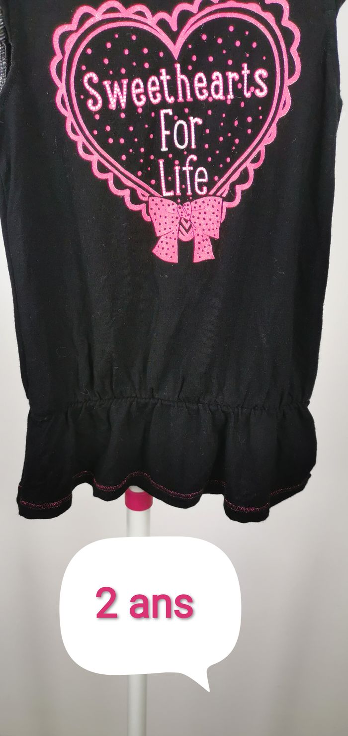 tunique sans manches noire avec cœur rose fluo devant. petit volant en bas. article neuf sans étiquette. Remise si lots. Négociation possible.(Si raisonnable ). hésitez pas a me contacter pour plus de renseignements, photos, mesures....