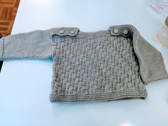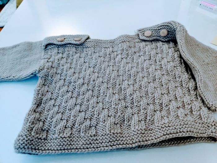 Joli pull laine tricoté main beige mixte taille 6 mois - photo numéro 4