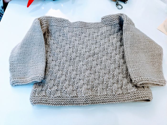 Joli pull laine tricoté main beige mixte taille 6 mois Tient bien chaud