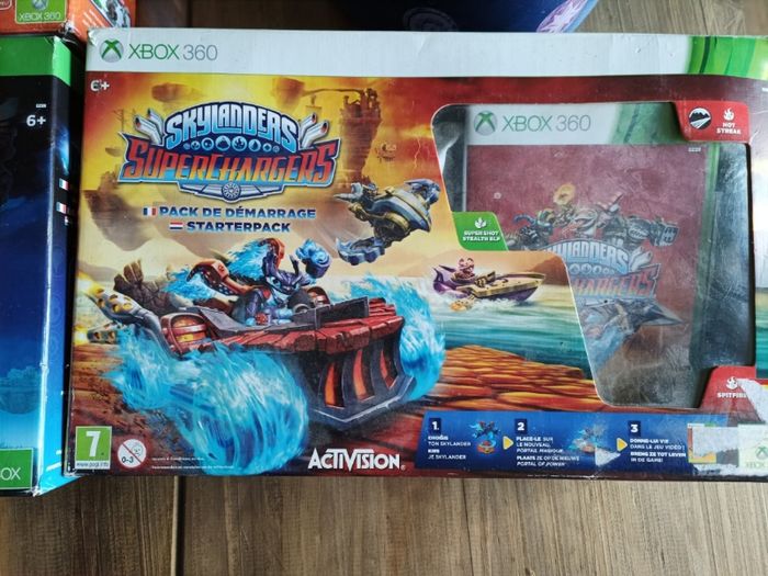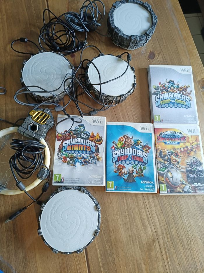 Vends lot de Skylanders sortie de grenier le pack super chargeur Xbox 360 ne contient que le jeu et le plateau tout le reste est complet le plateau sans fil fonctionne également