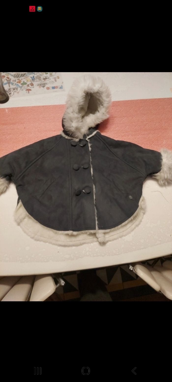 Superbe manteau facon capeline, excellent etat, 12mois, jean bourget, boitons et zip Capuche fixe #fille12mois_mondressing11_bv
