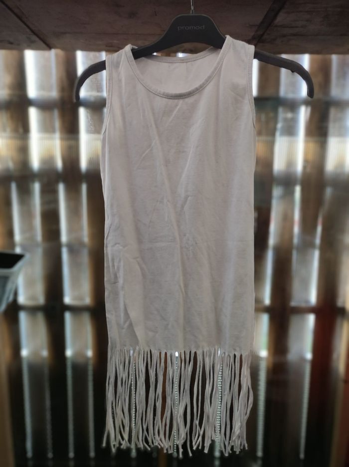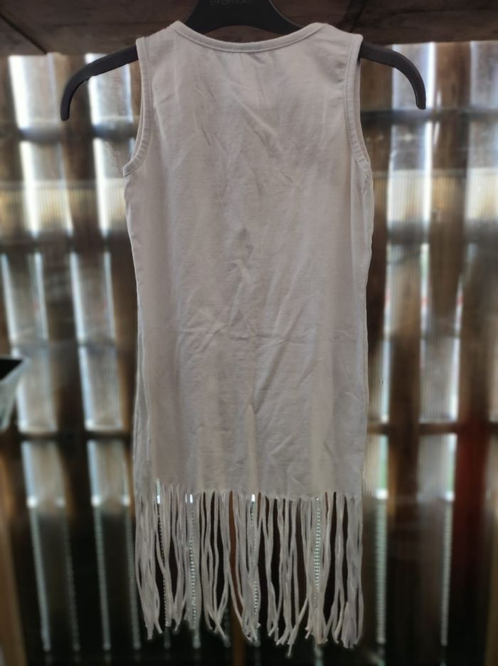 Robe blanche a franges sur le bas. Une légère tâche a peine visible sur l'avant ( voir photo) sinon état correcte. Taille 5 ans