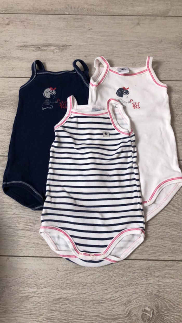 je vends deux body de la marque petit bateau et le troisième est offert car il y a une pression de déchirer à voir sur la photo numéro deux