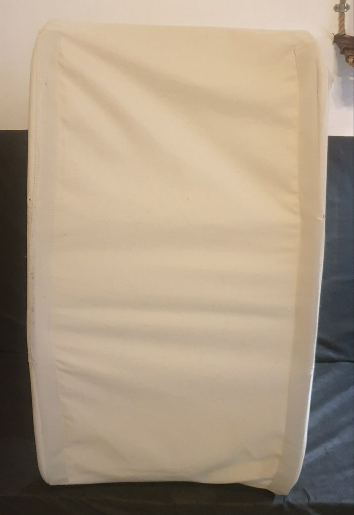 Lit + transat stokke en etat tout a fait correct Sur le lit se trouve de petit trou sous le socle du lit ainsi que des traces de fer a repasser qui ne gêne en rien sont utilisation.( Voir photos) Sur le transat une ossature plastique est souple et qui ne gene en rien sont utilisation aussi. Transat de coloris beige 2 tons , lit beige. Le lit comprend 2 matelas offert.