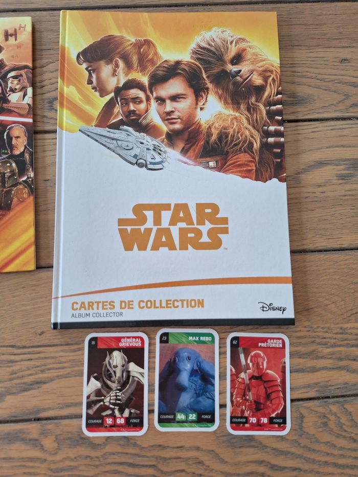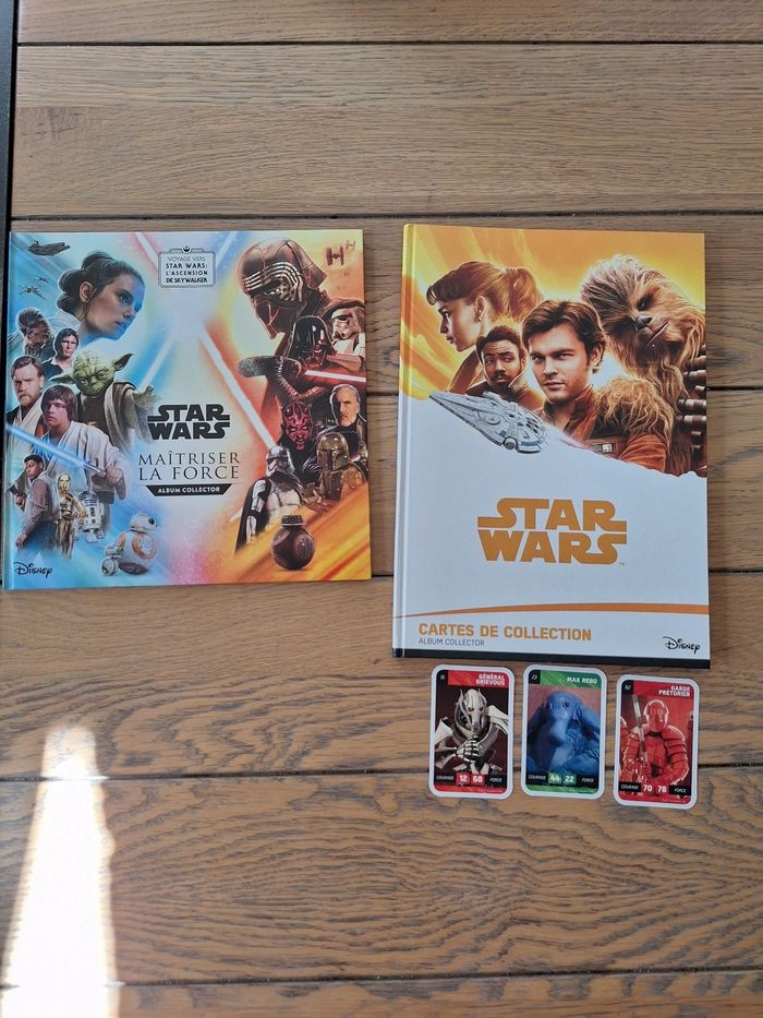 lot de 2 albums de cartes et autocollants Star wars sur celui Maîtriser la force il manque 8 autocollants sur le Star wars il manque 5 cartes mais il y a quelques une en double