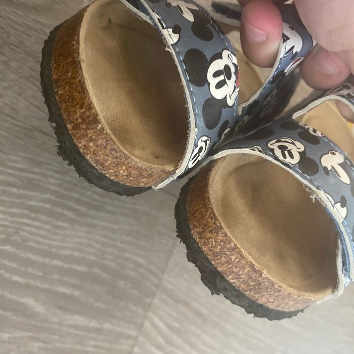 Sandales Mickey, quelques traces d’usure sur la semelle à l’avant (cf photo)