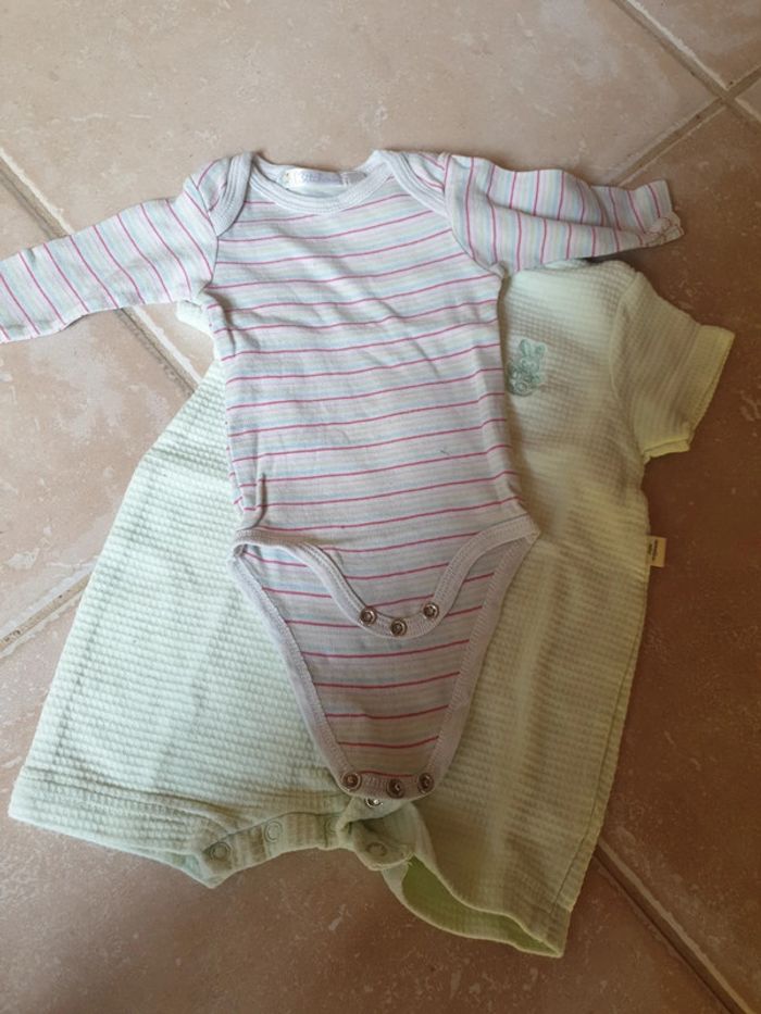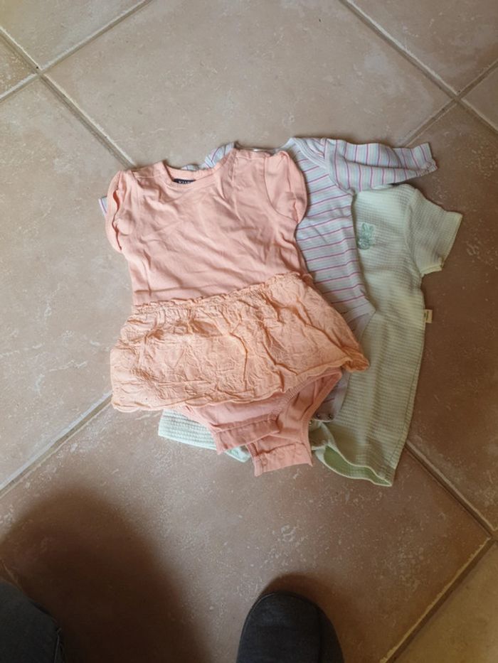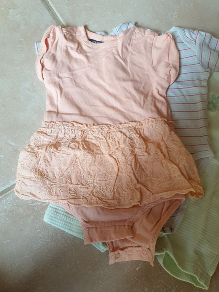 Lot bodys. Joli orange effet tutu marque kiabi. Manche longue rayé marque kitchoun. Vert pale marque camaïeu.