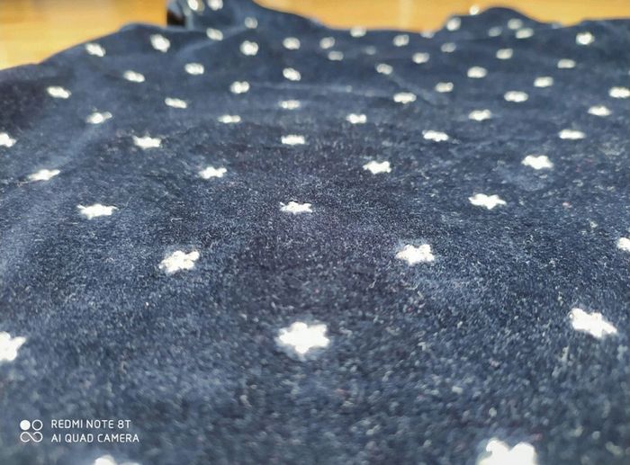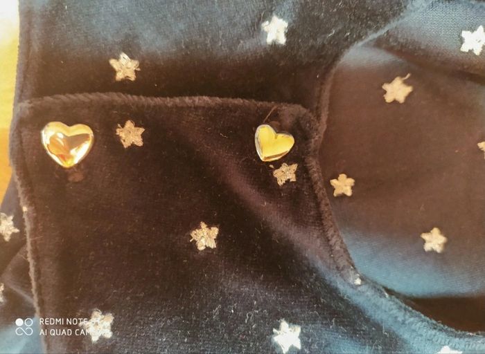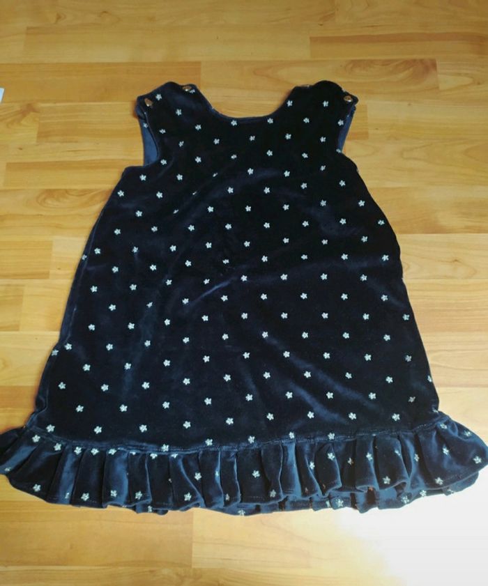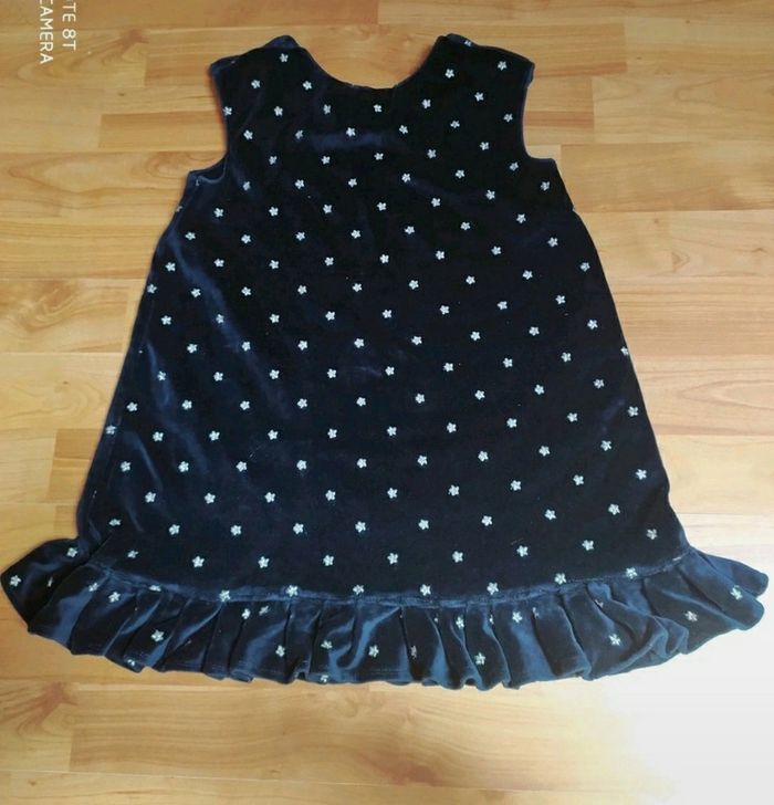 Robe velours 6 ans Robe 6 ans Aspect de velours Bleu marine avec des étoiles Petits frou-frou dans le bas de la rose Boutons en coeur sur le haut de la robe En parfait état