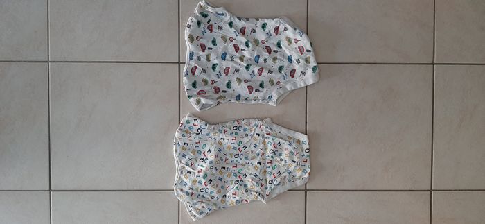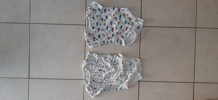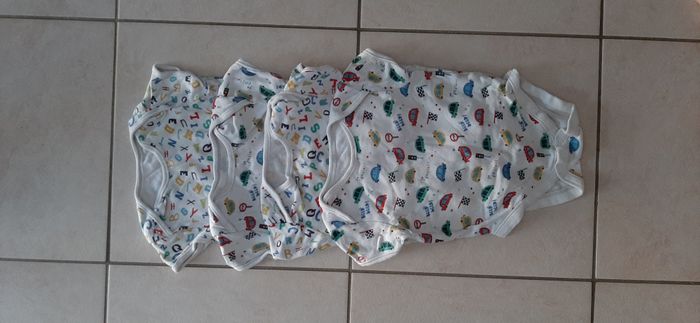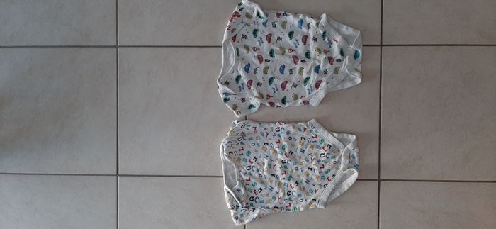 Lot de 4 body manches courtes PRIMARK. Taille 6/9 mois (74 cm). Souvent porté, mais en bon état.