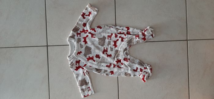 Lot de 4 pyjamas d'hiver Noël. 2 pyjamas ORCHESTRA, et 2 pyjamas sans marque. Taille 1 mois (54 cm). Très bon état.