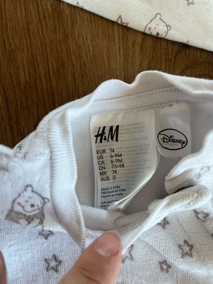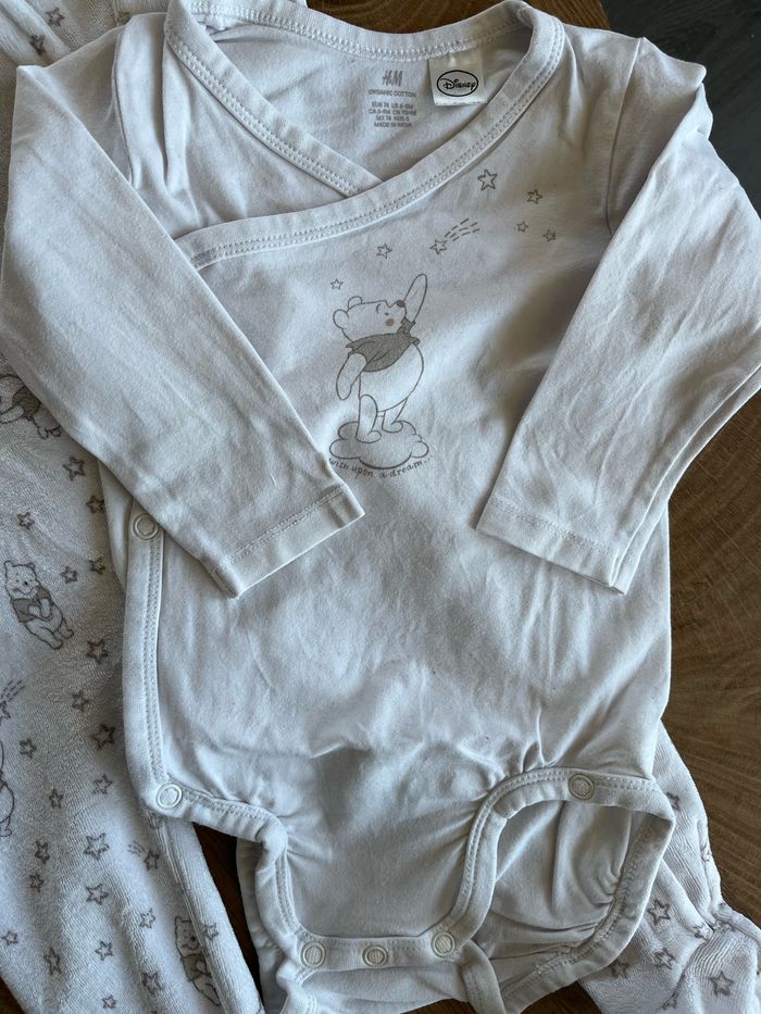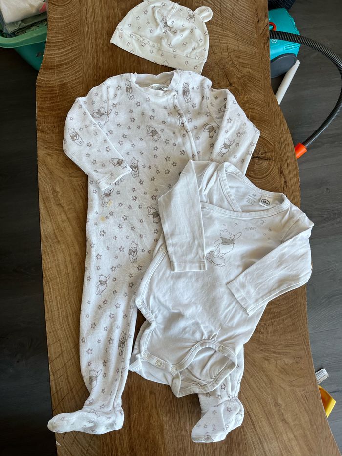 Winnie l’ourson Pyjama, bonnet et bodie Une tâche voir photo Taille 74cm / 6-9 mois Marque Disney de chez h&m