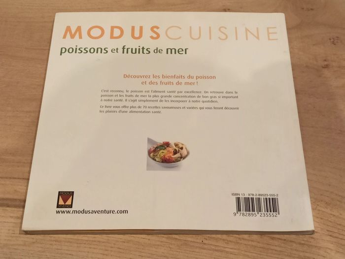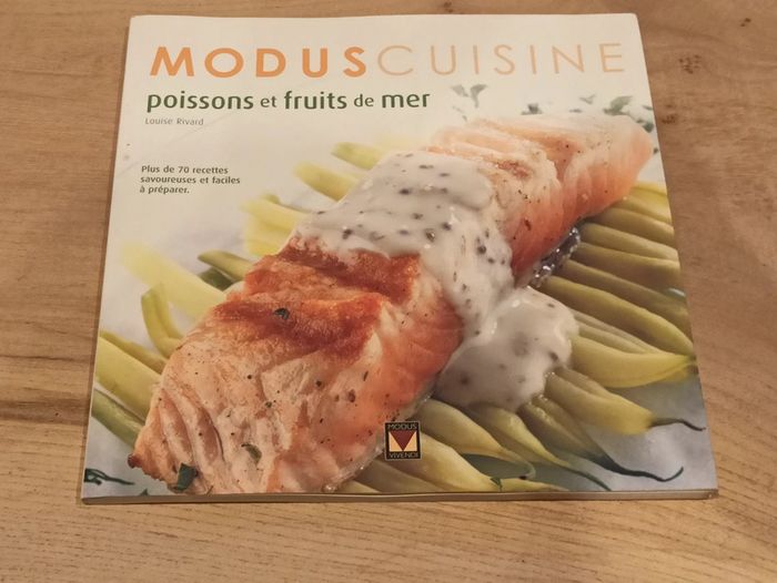 Livre de recettes Moduscuisine Poissons et fruits de mer Pages et couverture en bon état Stocké suite à un déménagement dans un garage. Possible odeur présente Pas de moisissures, tâche d'humidité, pages gondolées ou collées... #liibylivres