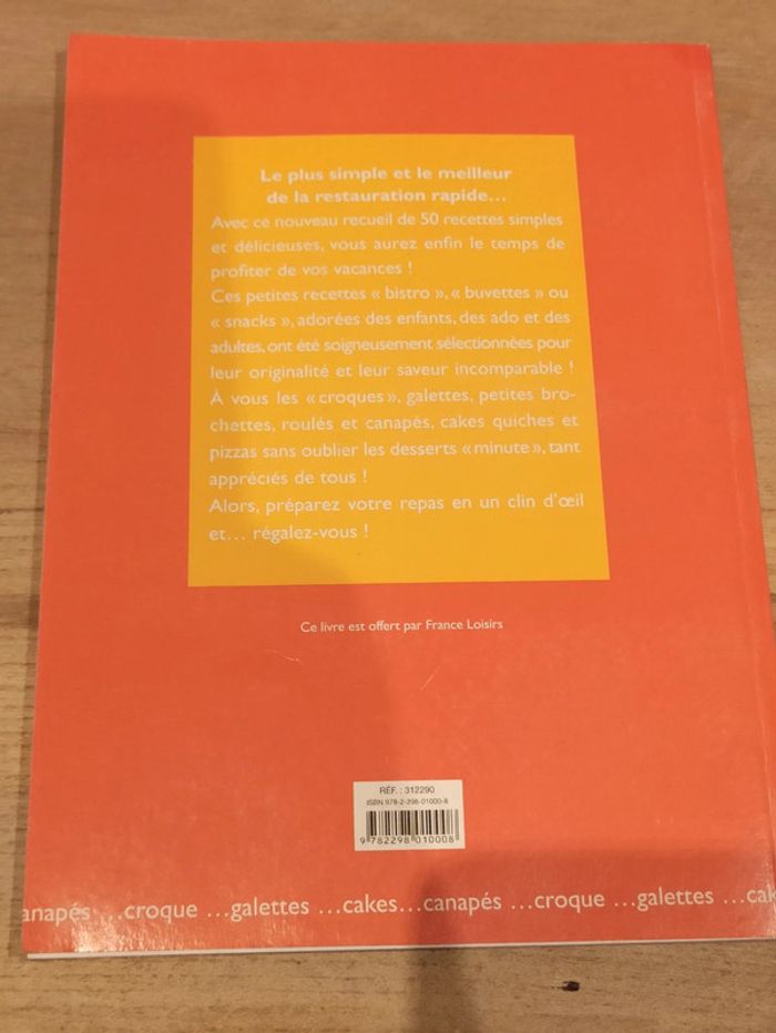 Livre de recettes Snacks et en-cas vite prêts Pages et couverture en bon état Stocké suite à un déménagement dans un garage. Possible odeur présente Pas de moisissures, tâche d'humidité, pages gondolées ou collées... #liibylivres