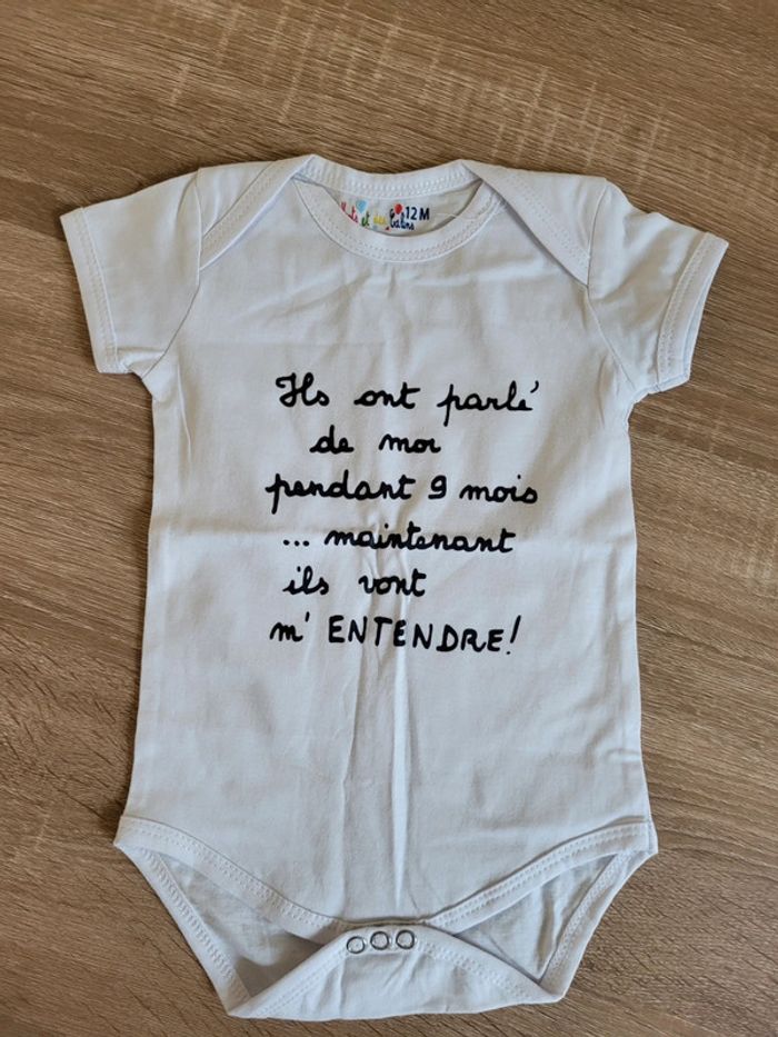 Bodie personnalisé 100% coton Taille 12 mois Neuf jamais porté #ninie624douzemoisfille