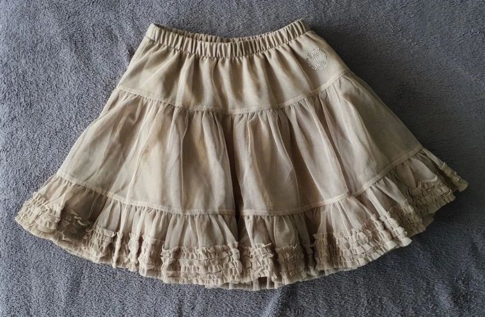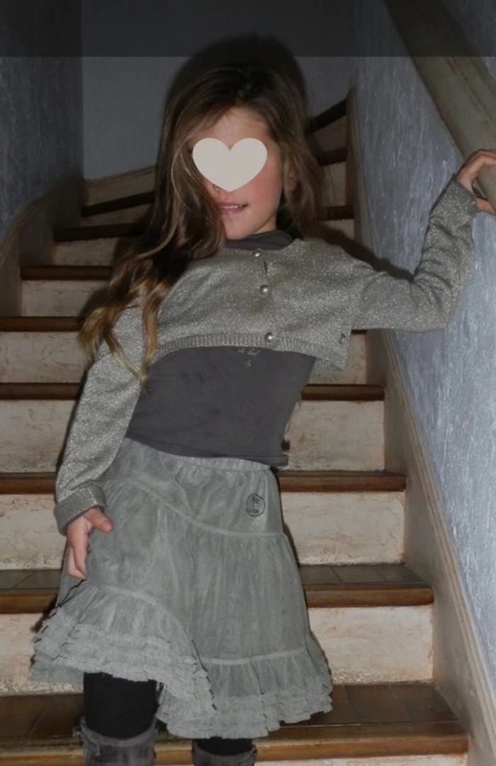 Ensemble 3 pièces Repetto - Gilet court lamé doré 6 ans - Haut manche longue 5 ans - jupe tulle (manque 2 petit strass voir derrière photo) Peuvent être vendu séparément. Gilet 12e Haut 10e Jupe 12e Contactez moi