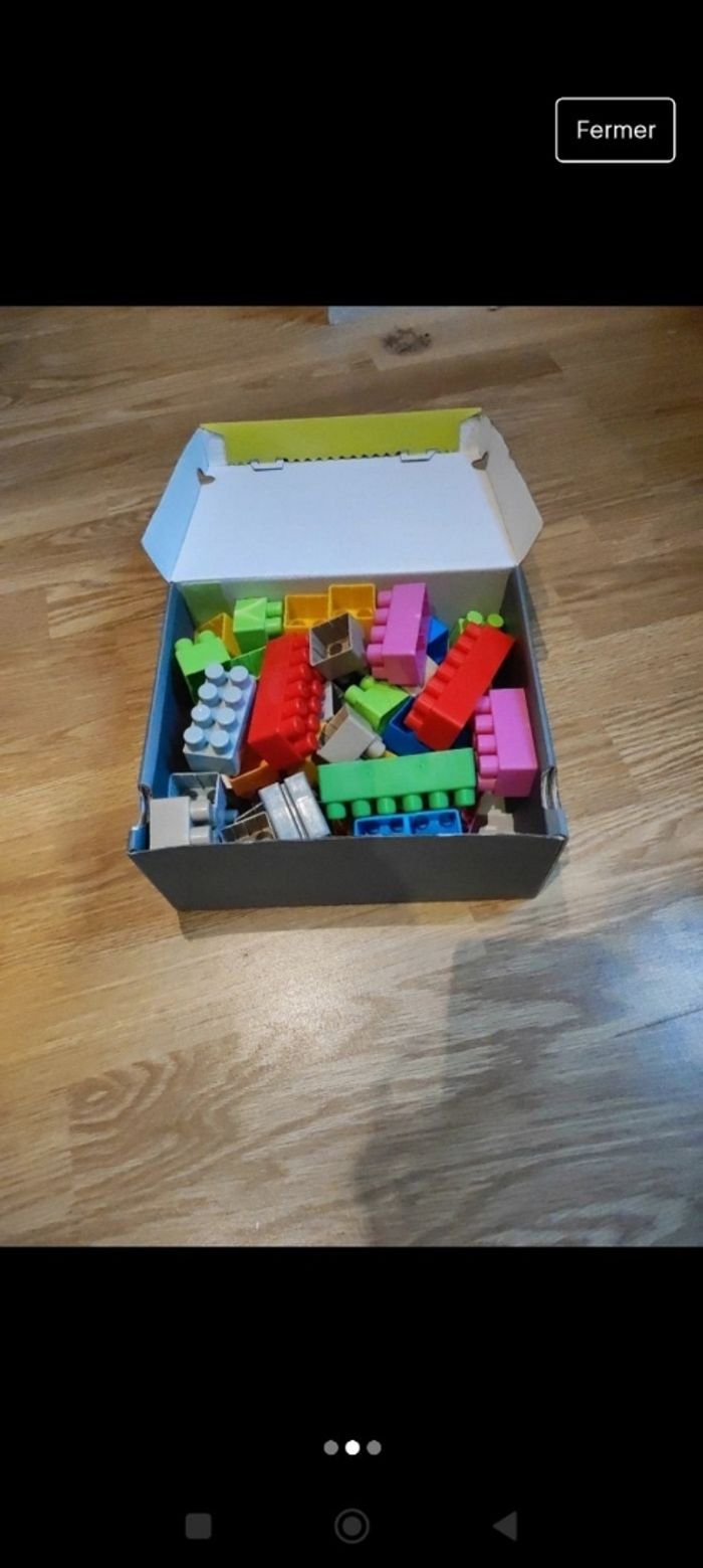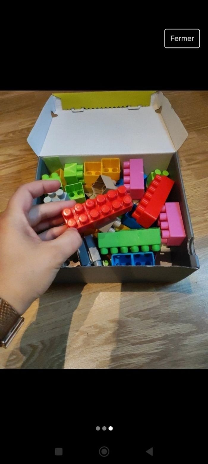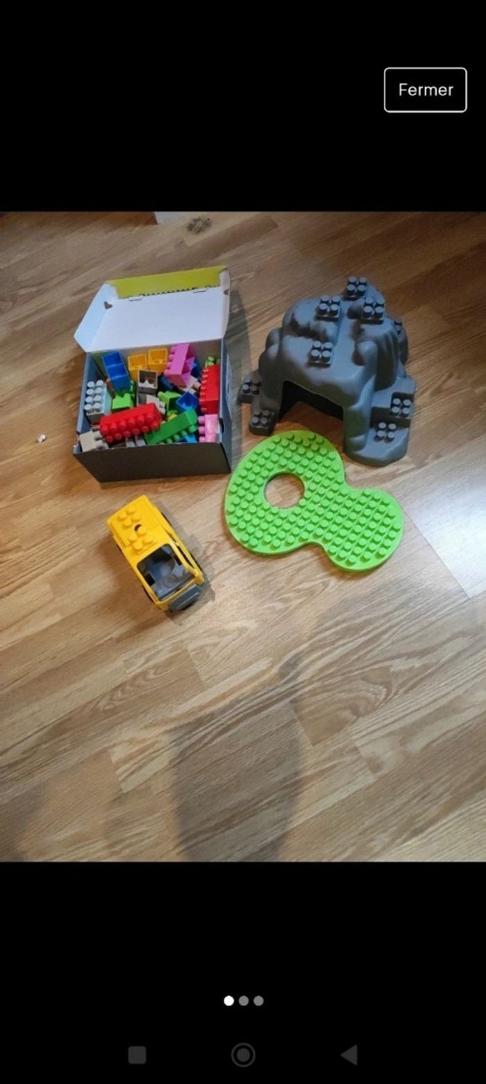 Lot de 49 blocs de construction + un camion + une planche +un rocher
