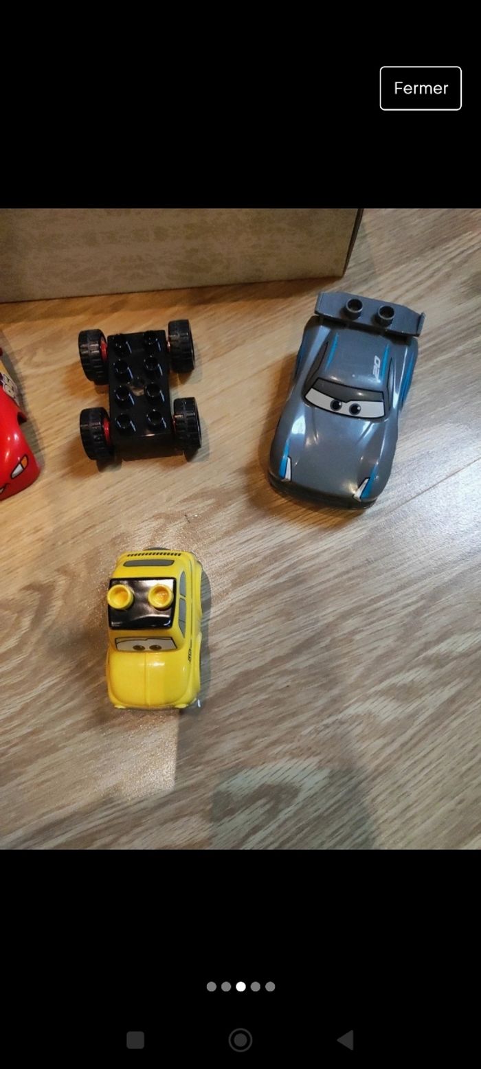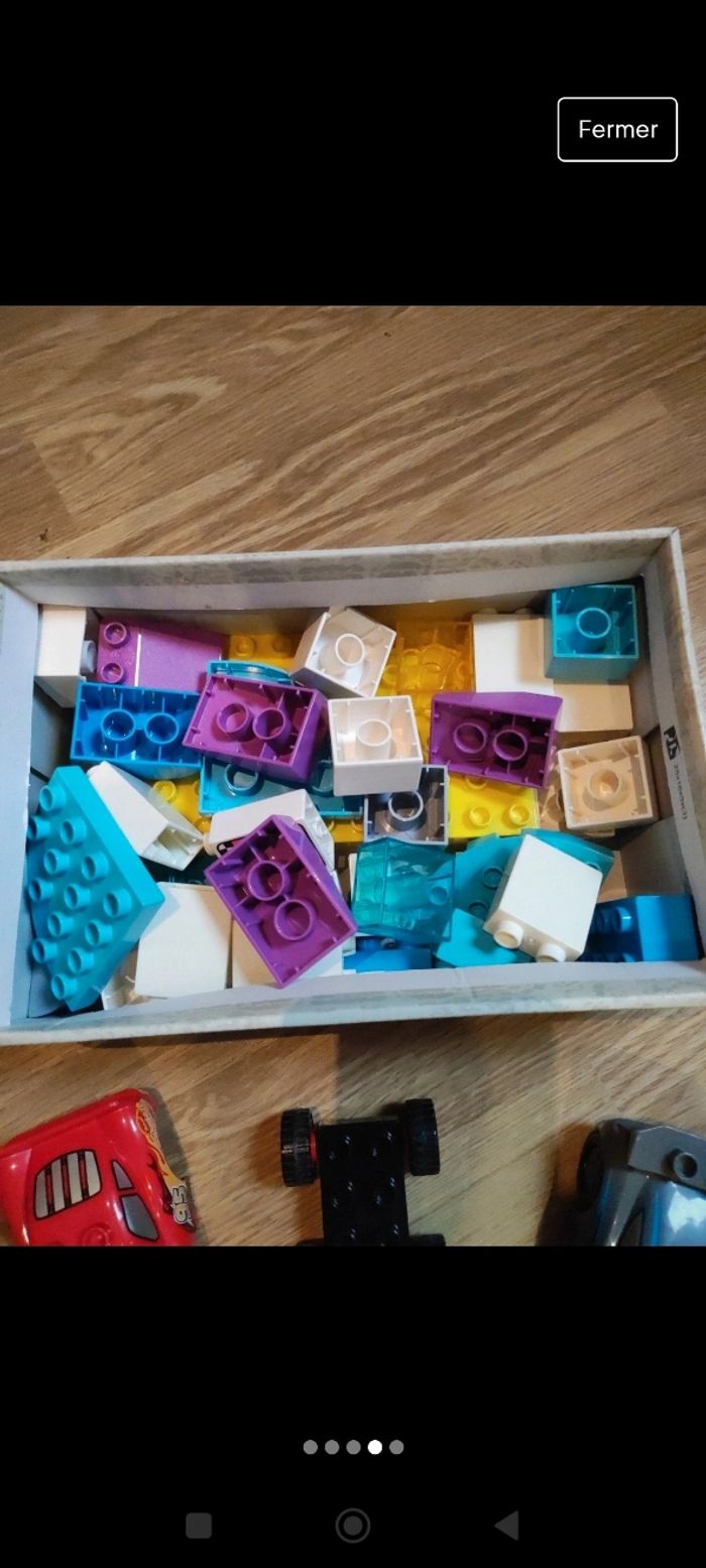 Lot de 33 blocs de construction + 2 planches et 4 voitures Lego
