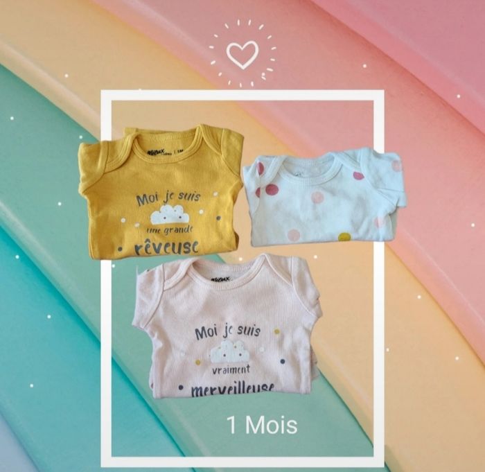Vend 3 bodies manches Longues très bon état taille 1 mois, 1€ l'unité