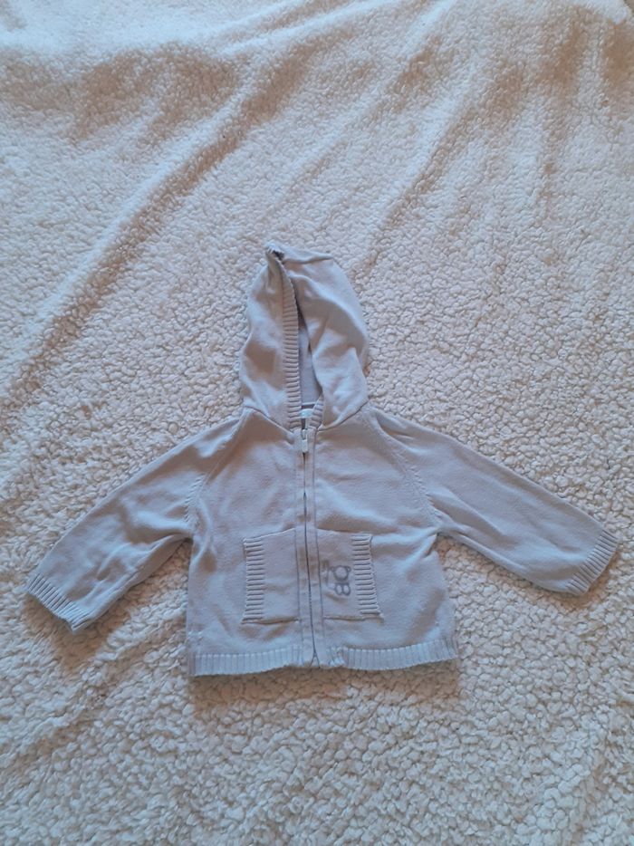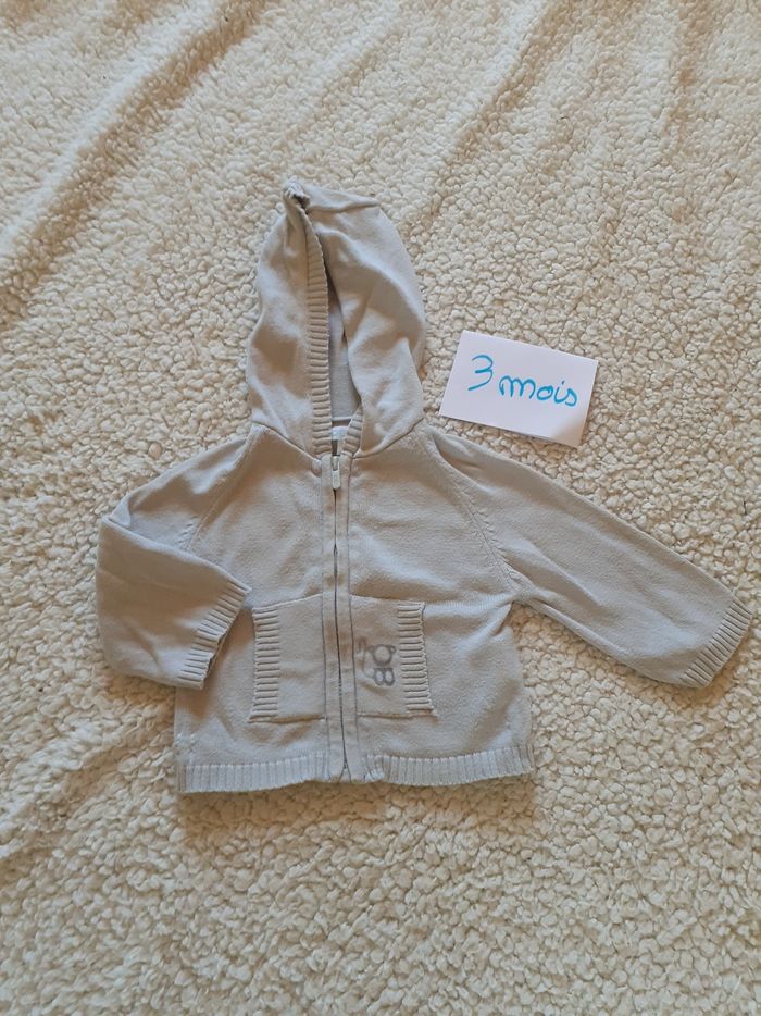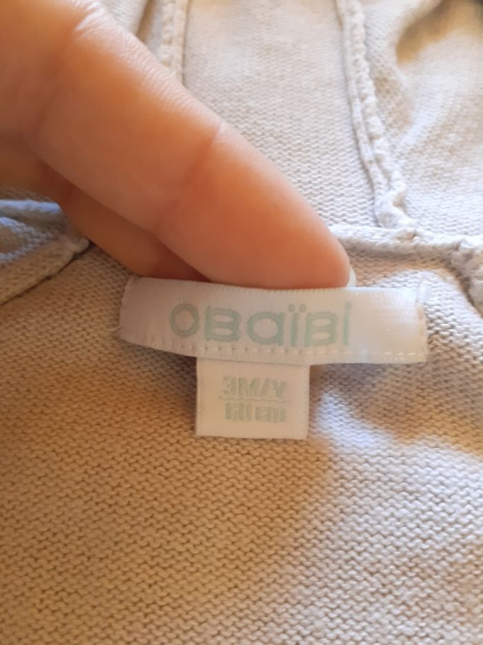 Gilet obaibi gris 3 mois Avec capuche et fermeture éclaire Gilet fin Très bon état Peu porté