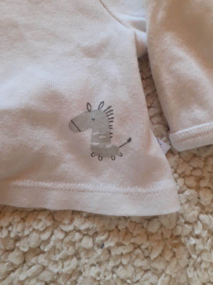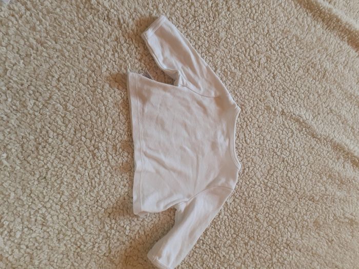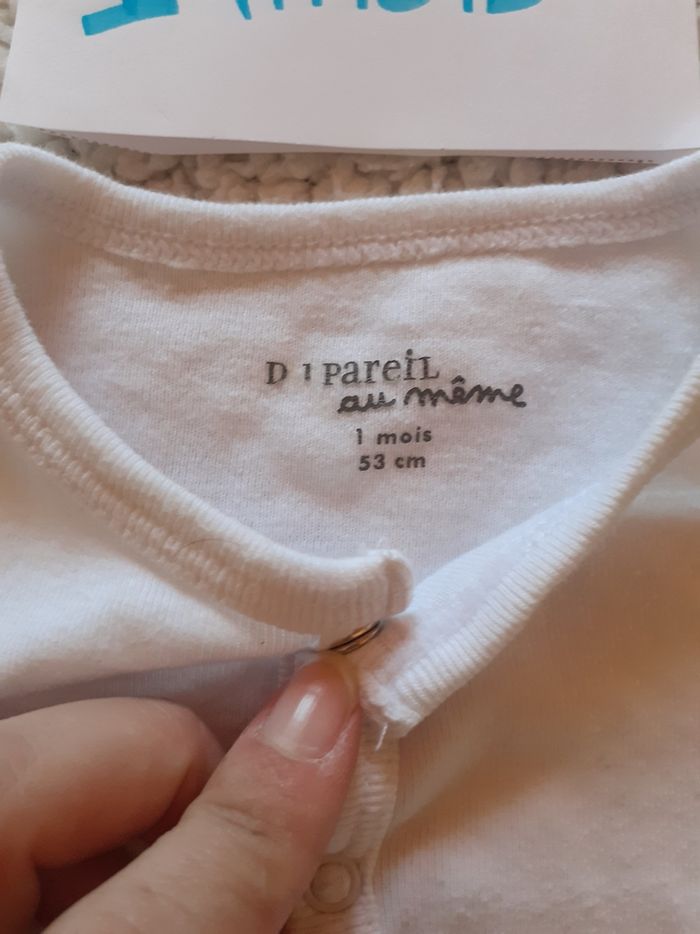 Gilet blanc du pareil au même Taille 1 mois mais taille un peu petit, un peu court Bon état car souvent porté Léger donc idéal demi saison