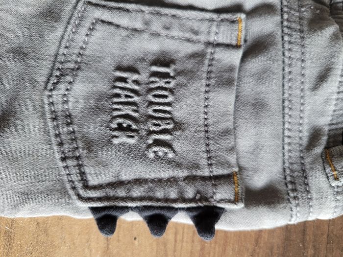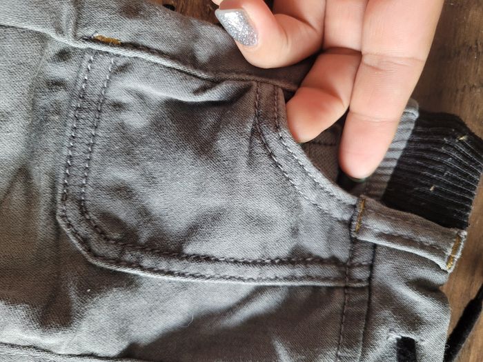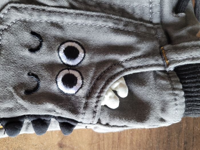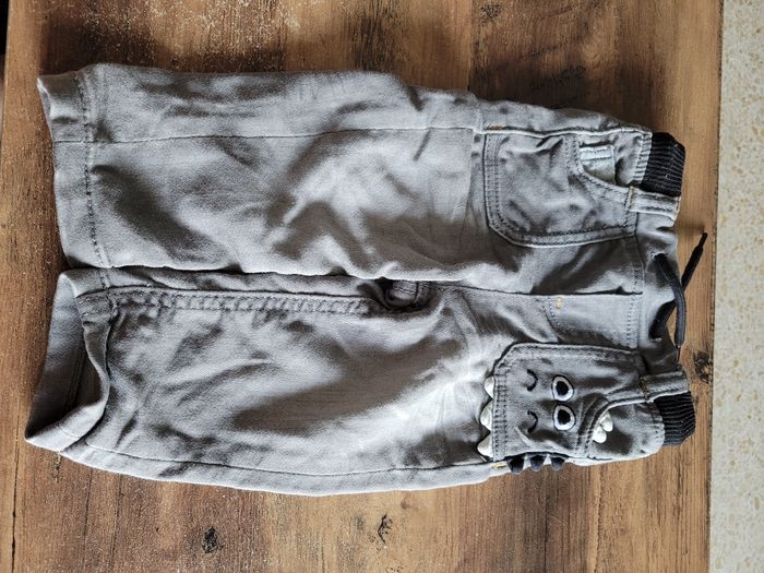 Petit jeans Couleur gris Avec une poche dinosaure Taille 9 mois Mi saison Vrai poche devant et derrière Matière 77% coton 21 % polyester 2% elastanne