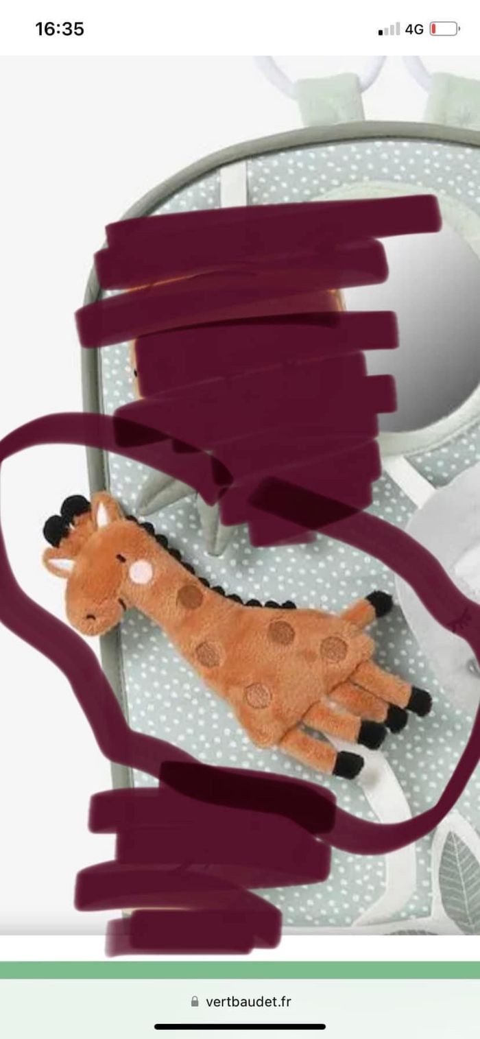 Mon fils a perdu cette petite girafe, a la base c’était un accessoire pour portique mais il en a fait son doudou. Je recherche désespérément la même, qui figure sur plusieurs jouets, de la marque VERBAUDET