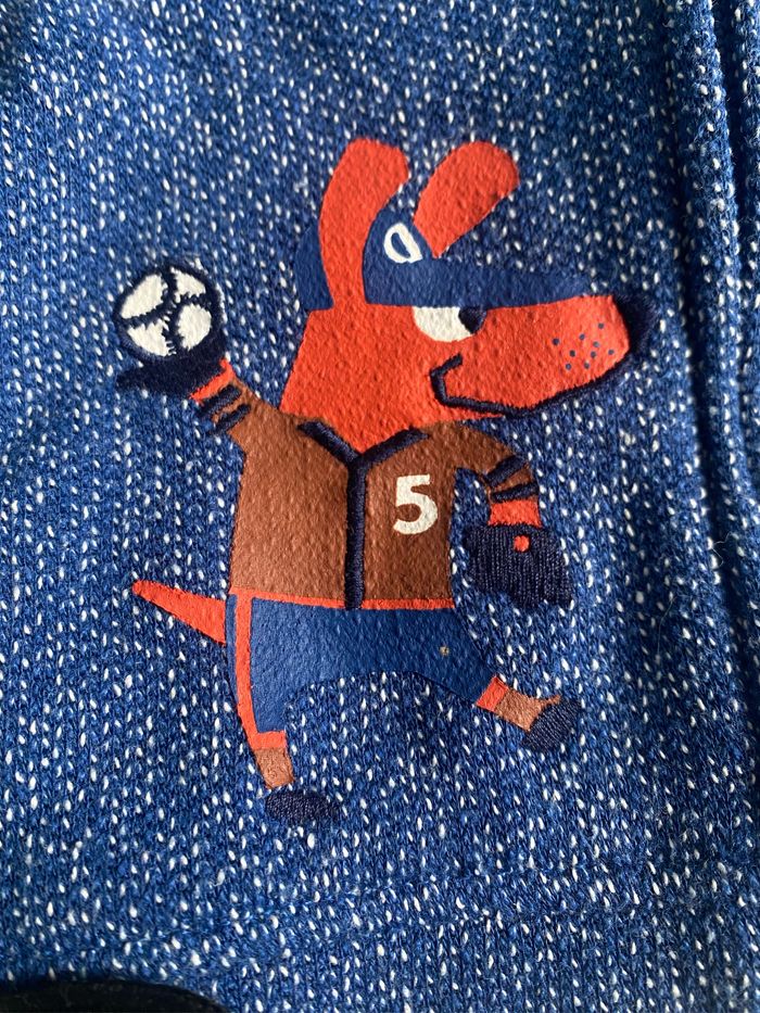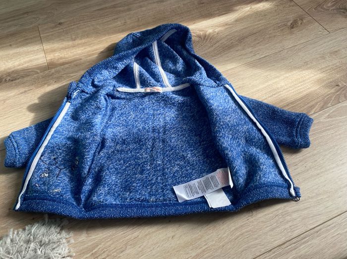 Gilet bleu 6 mois du pareil au même Très peu porté, un petit point sur le dessin (voir seconde image) Réduction sur les lots et possibilité de grouper les frais