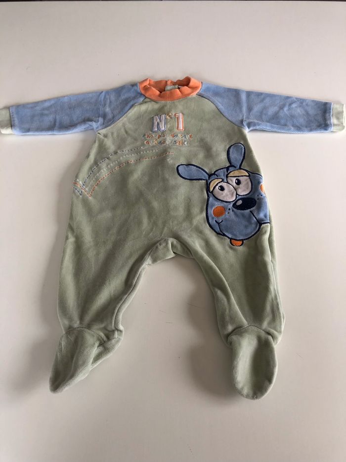 Dors bien en velours (80% coton + 20% polyester). Ouverture par boutons pressions dans le dos. Taille 3 mois.