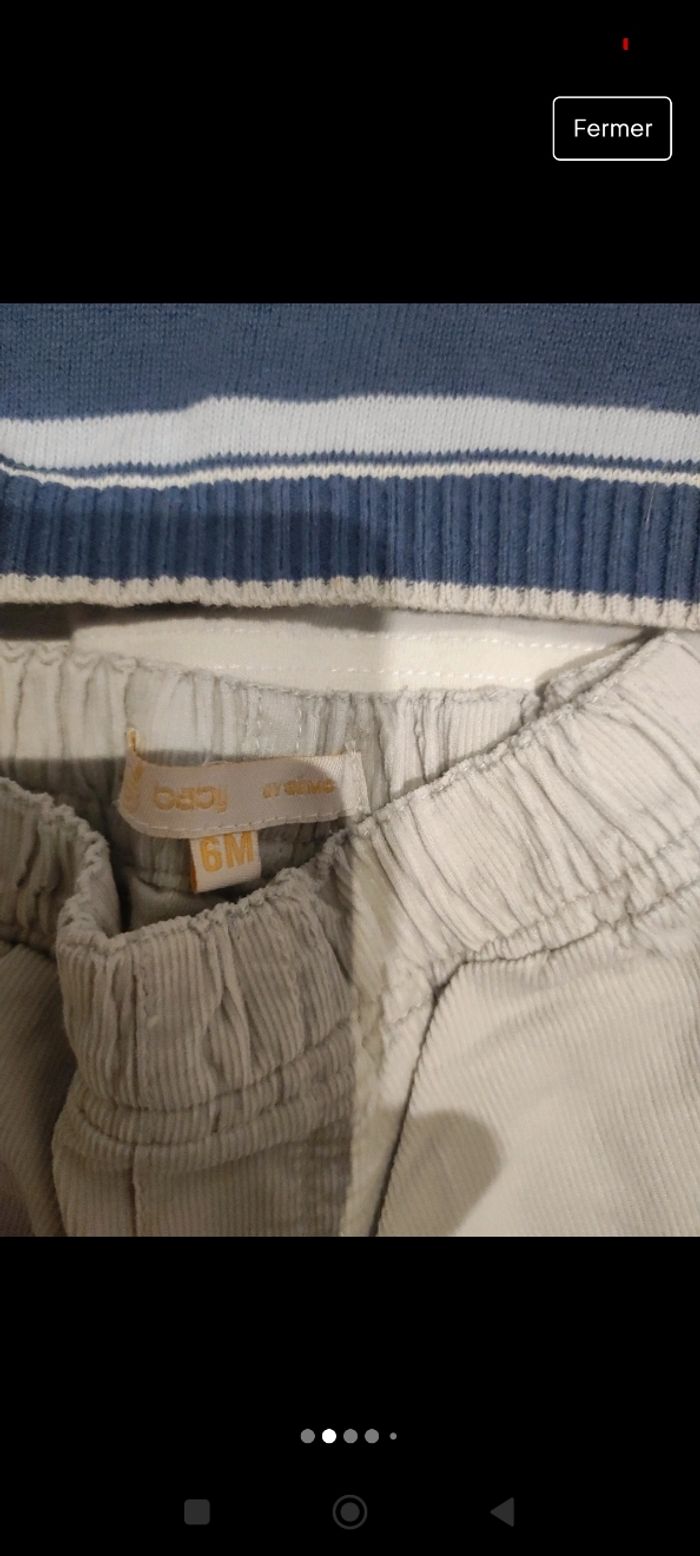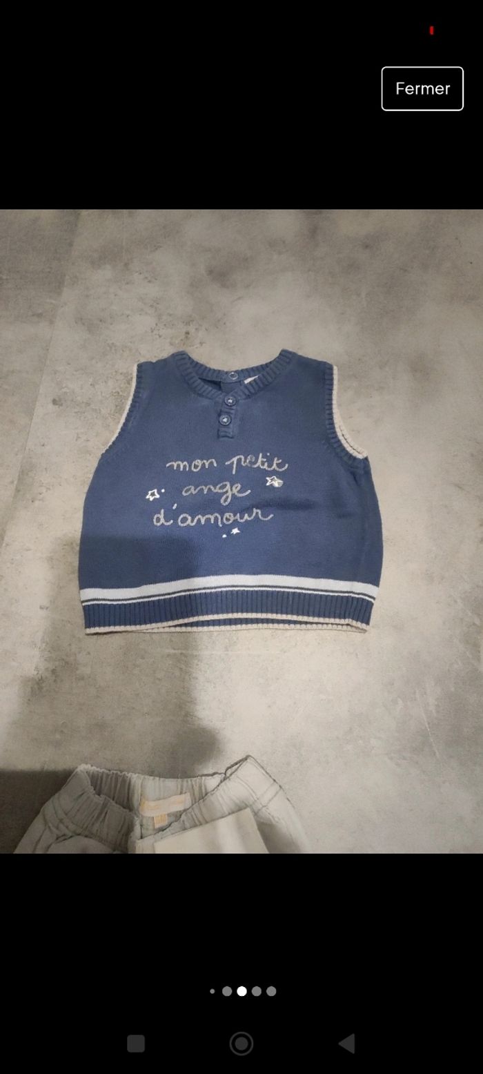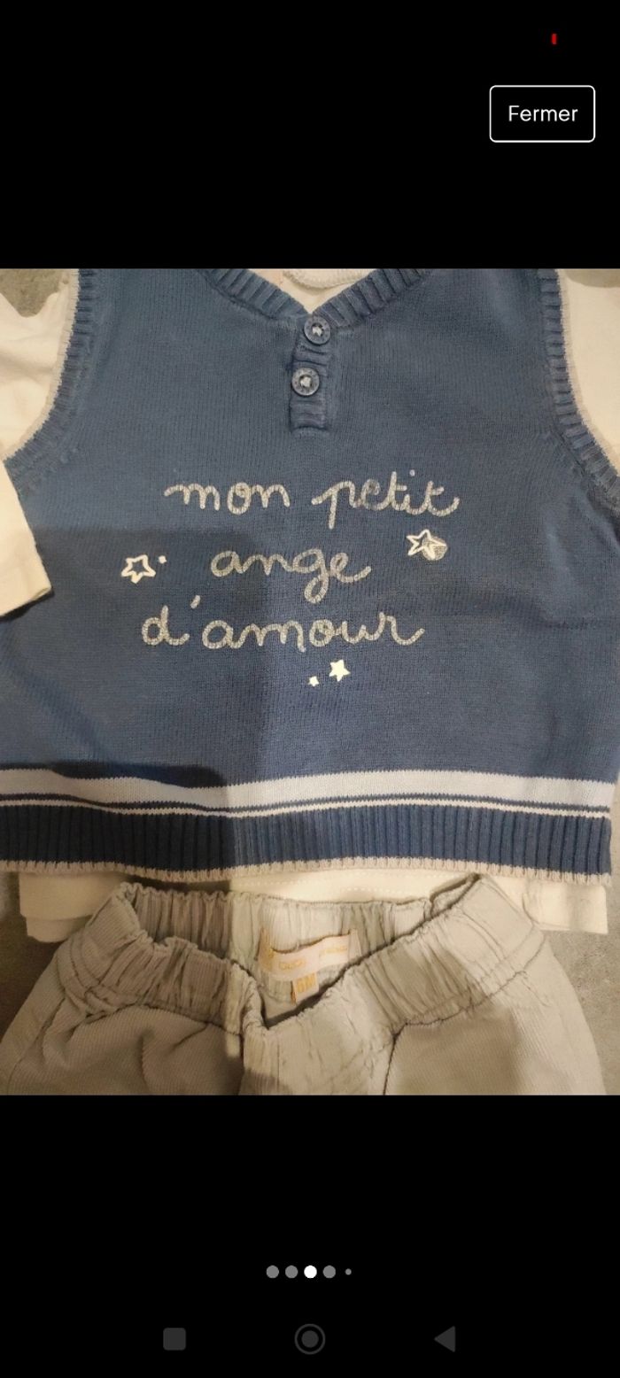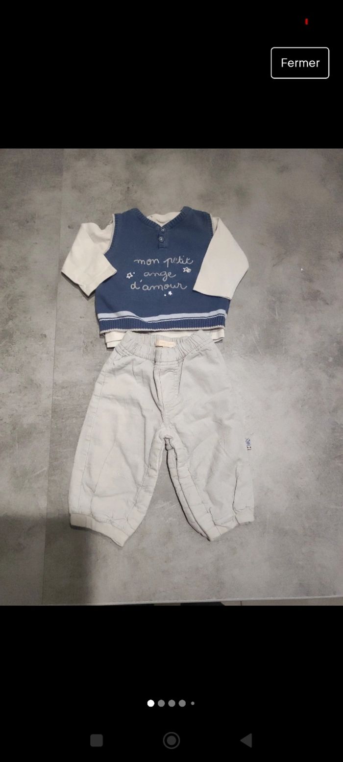 Ensemble garçon 3 pièces Gémo . Petit accro derrière le pull blanc voir photo taille 6 mois