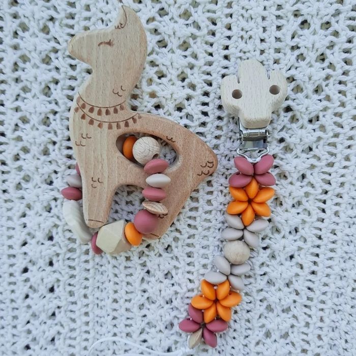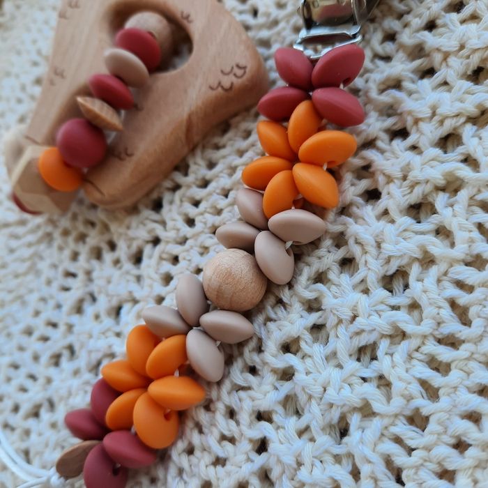 Marque Sémignon_creabebe (insta) Couleurs et anneaux en bois modifiables. Sur commande. Le coffret anneau + attache tétine en perles de silicone (+ adaptateur MAM si besoin )