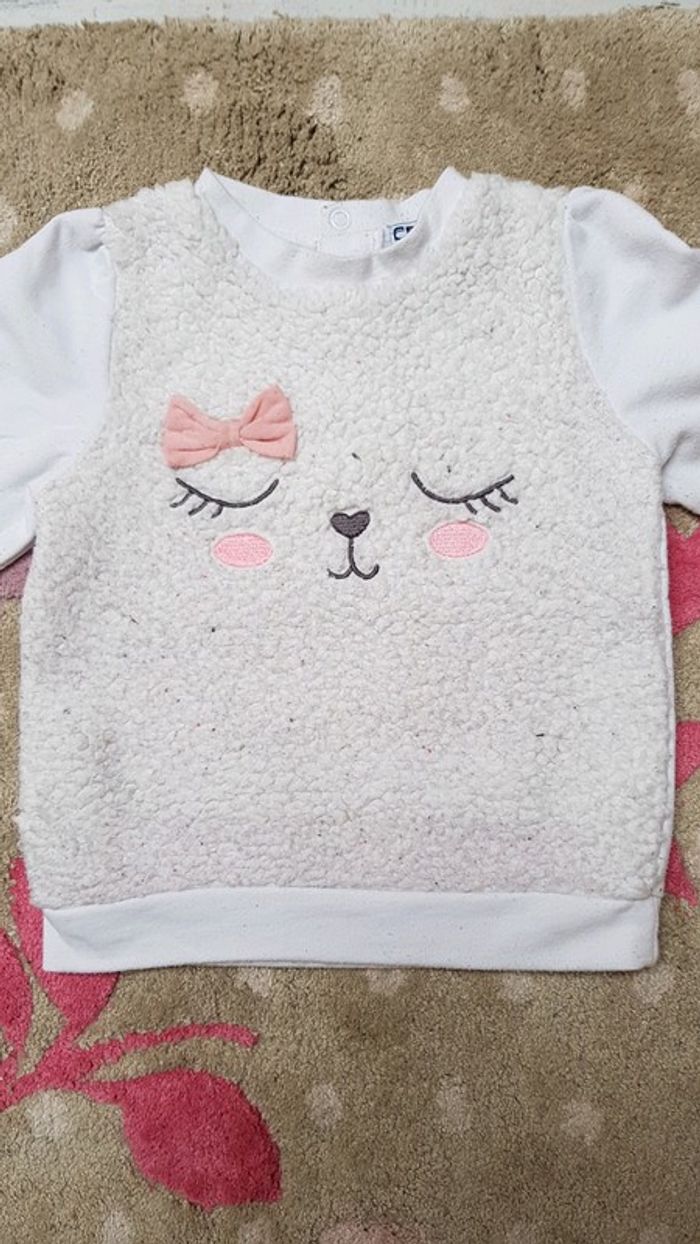 Pull Taille 18 mois Très bon état, des fluches se sont incrustés sur le devant. Pas de trous ni de tâches Marque Creeks