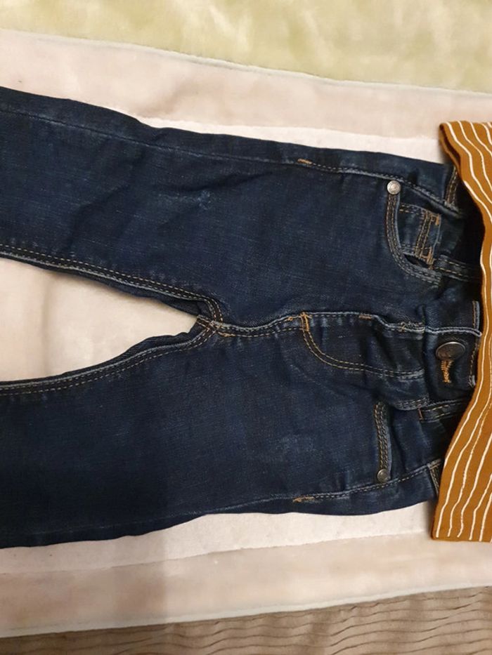 Très bon état. Jean bleu marine, pliage bas de la jambe possible ou non. Modèle effet usé normal. Attention doublons des annonces avec les tee-shirts ML vendus ensemble. Jean seul 6e et tee-shirt seul 3e.