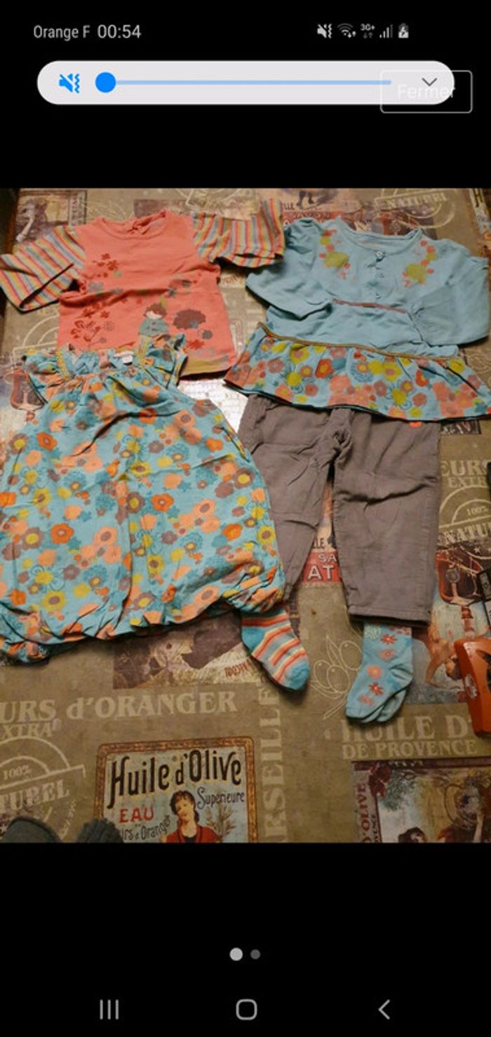 Bon état mais portés, très joli ensemble. Même collection. Legging rajouté en imitation laine en photo 2. La robe, 2 tuniques identiques pouvant aller avec robe et/ou legging ou pantalon. Chaussettes assorties offertes et 1 paire de collants aussi que je rajouterais avec.