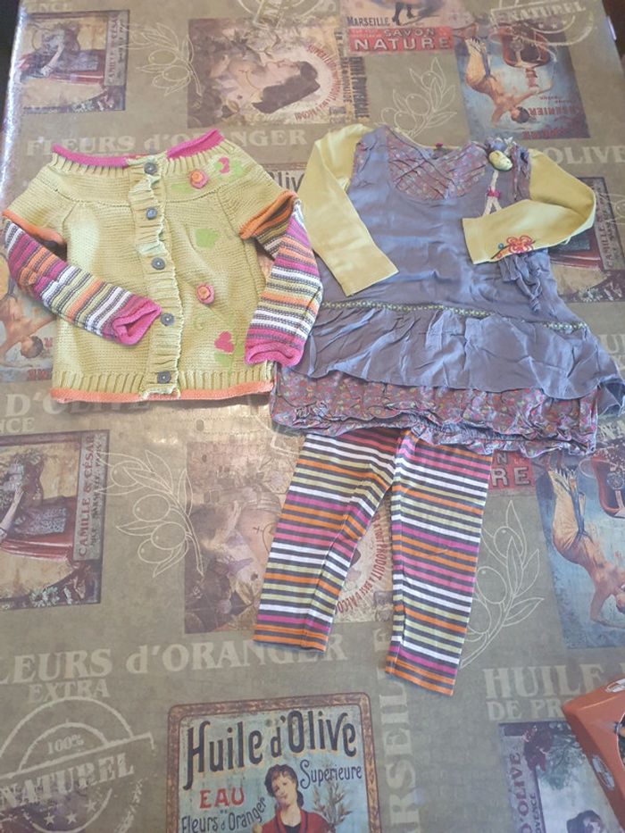 Bon état mais porté. Ensemble de la même collection composé: tunique, legging, tee-shirt manche longue et son gilet assortis.