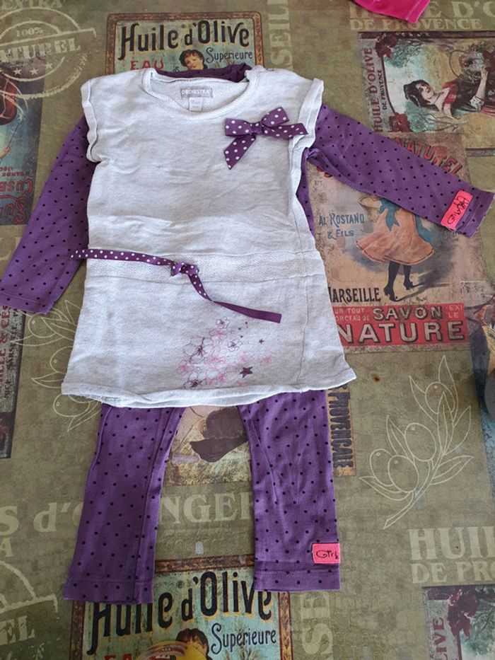 Bon état. 18 mois 3 pièces: legging, tee-shirt et tunique pull.