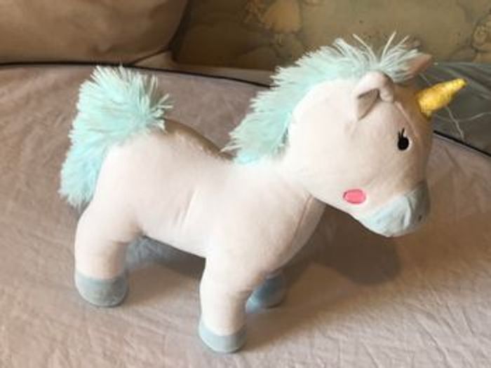 Licorne Blanche Crinière Queue Pattes Museau Bleues Claires Corne Jaune Peluche Petits Enfants Bébés - photo numéro 9