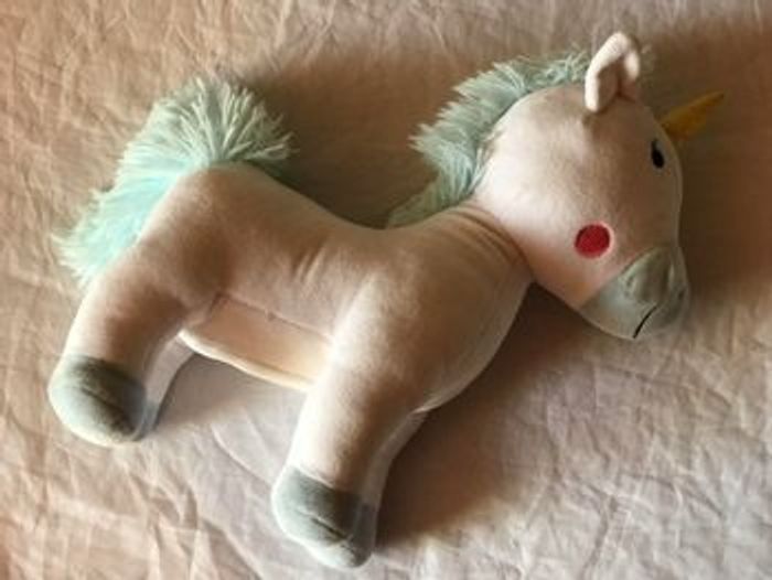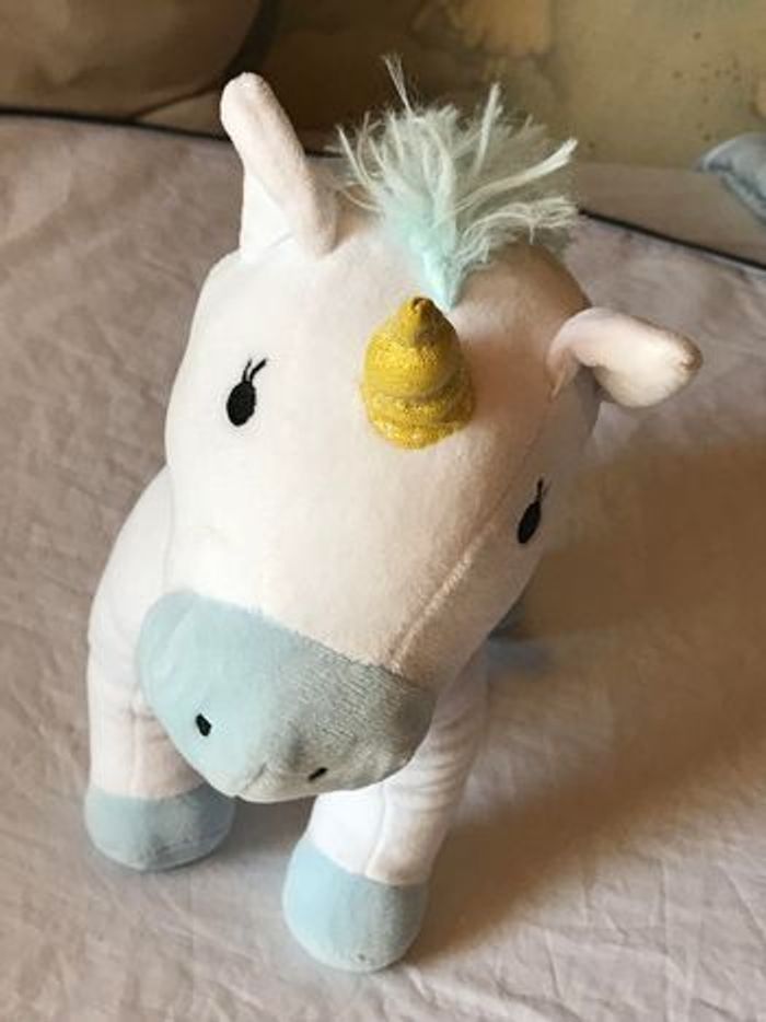 Licorne Blanche Crinière Queue Pattes Museau Bleues Claires Corne Jaune Peluche Petits Enfants Bébés - photo numéro 1