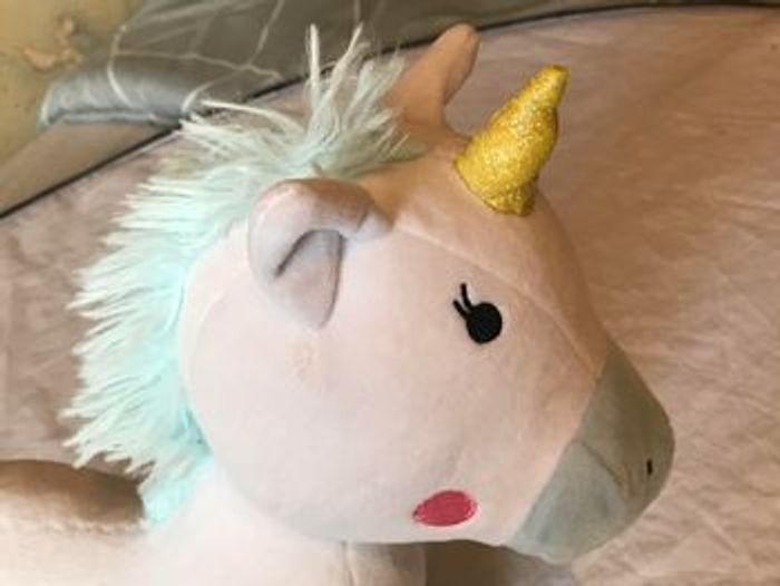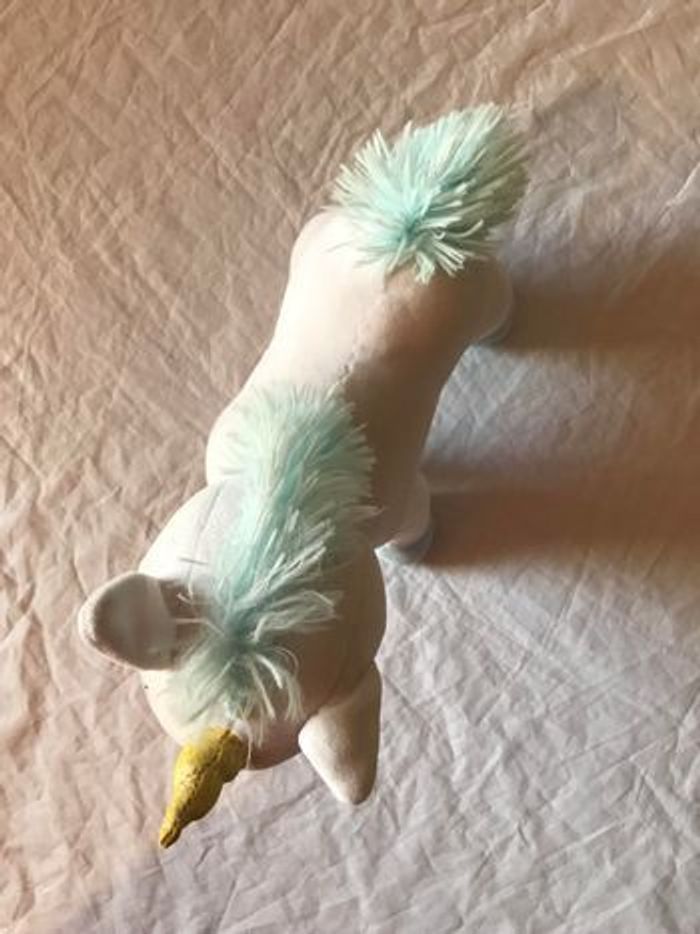 Licorne Blanche Crinière Queue Pattes Museau Bleues Claires Corne Jaune Peluche Petits Enfants Bébés - photo numéro 8