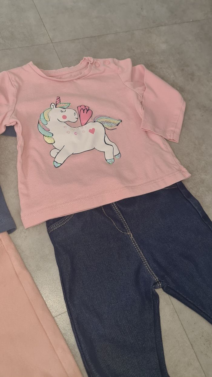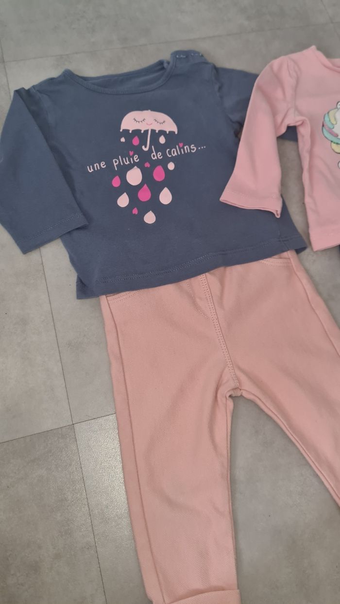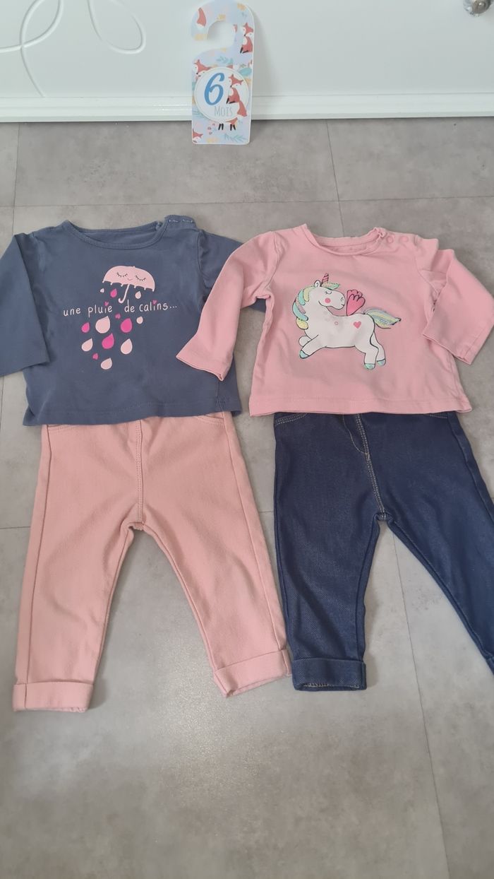 Vends ces 2 ensembles 2 leggings kiabi taille 6 mois 2 tee-shirts taille 6 mois En très bon état.