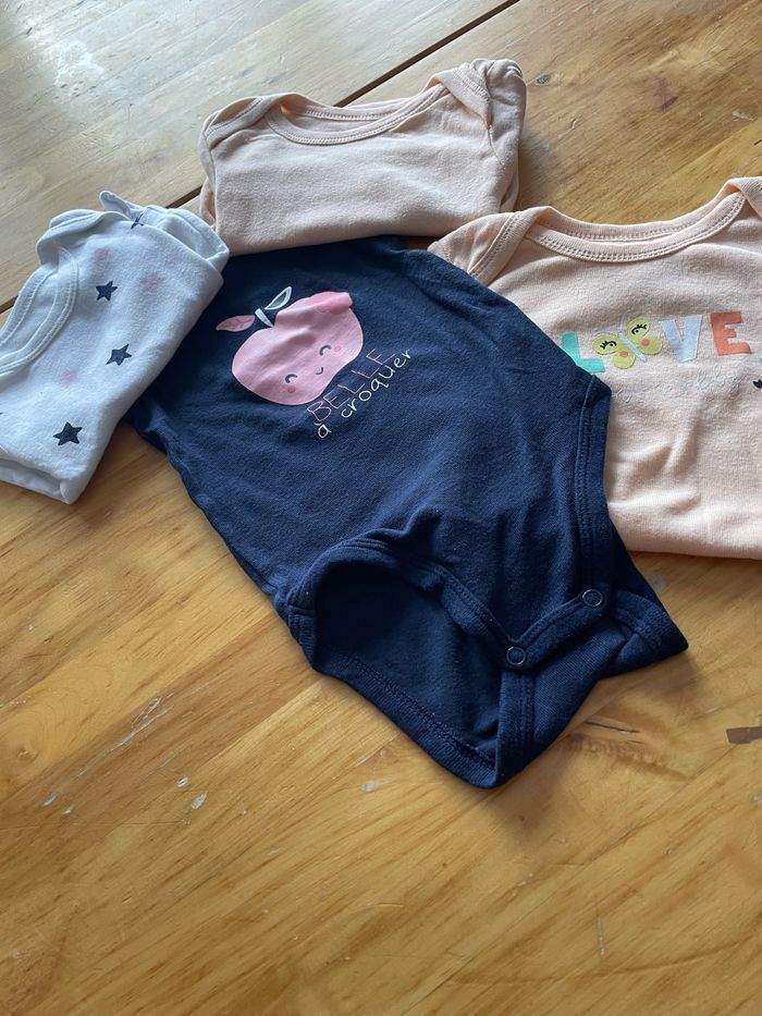 Bodys manches courtes fille en très bon état. Taille 6 mois De la marque Tex Baby