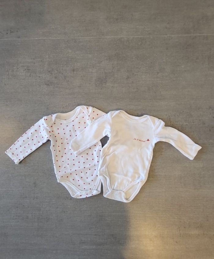 Lot de 2 bodies manches longues peu porté très bon état. Taille 6 mois