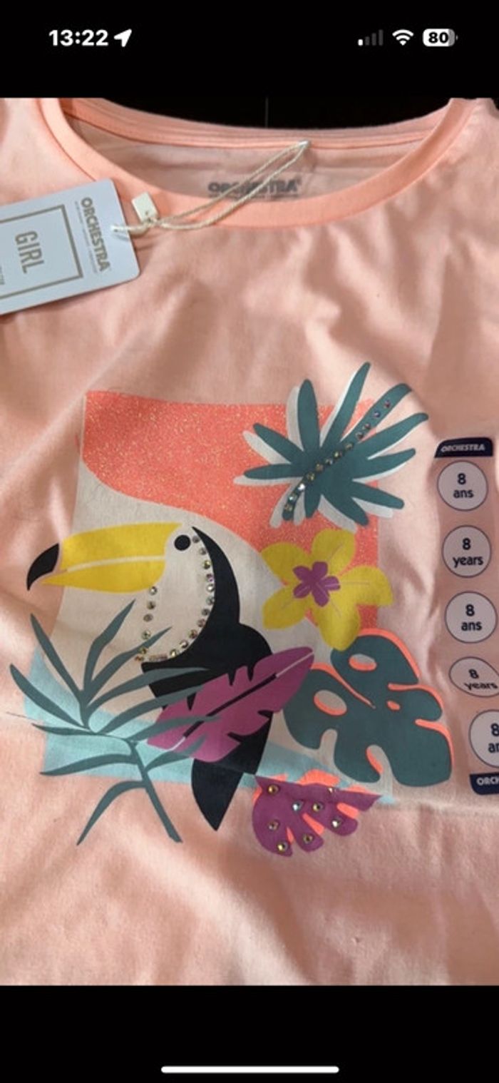 Tee shirt neuf rose avec strass - photo numéro 1