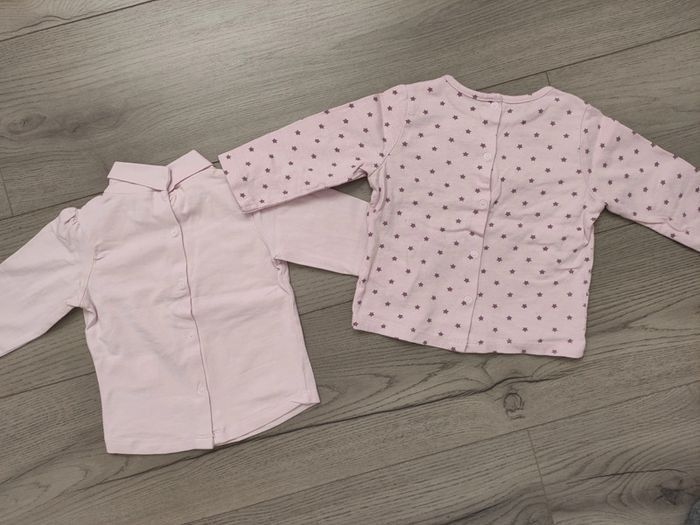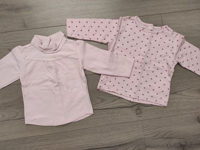 2 tee shirts manche longue fille en 9 mois de marque vertbaudet. Le lilas sans motif n'a jamais été porté #juliealicia03_filleneufmois