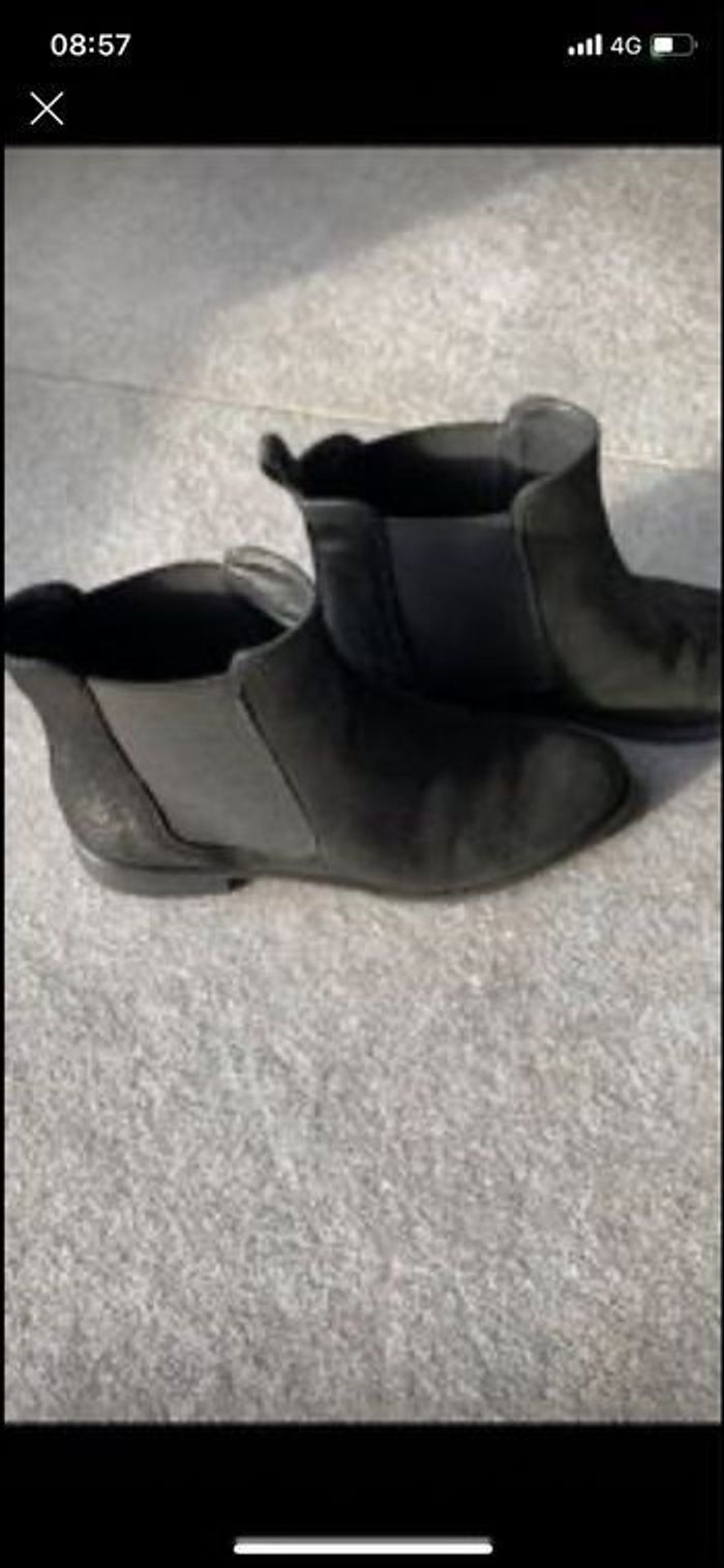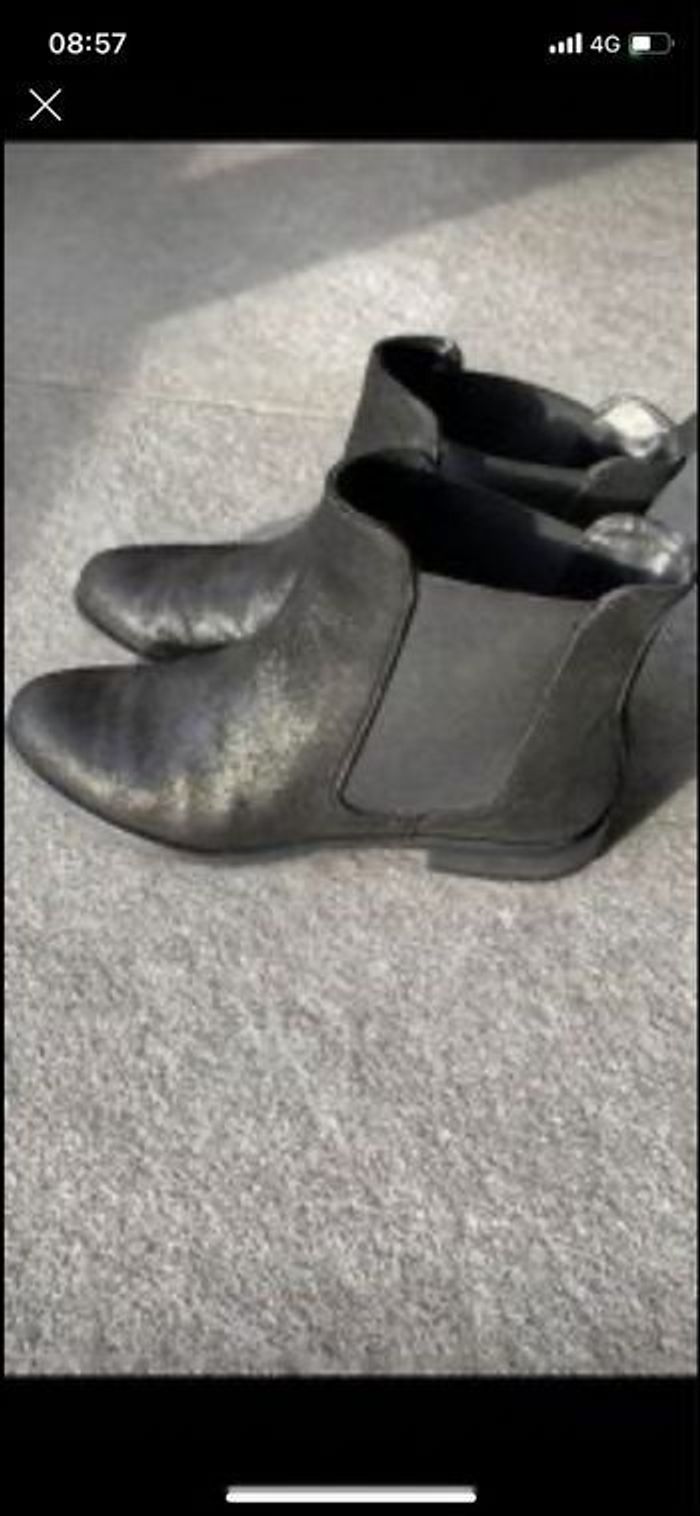 Bottines en cuir de Morgan Noir irisé Pointure 38 Bon état général usure normale des semelles voir photos