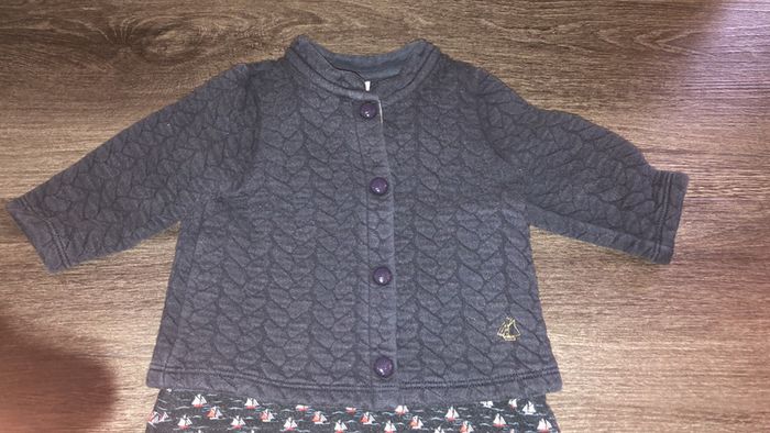 ensemble veste et salopette petit bateau très bon état bleu marine taille 6 mois